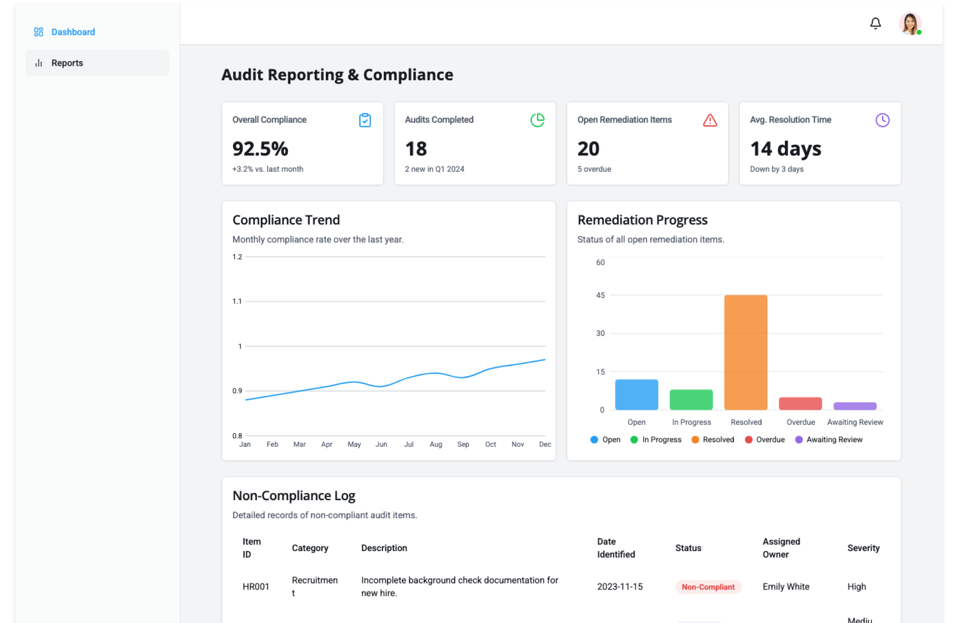 • Compliance Reporting Dashboard