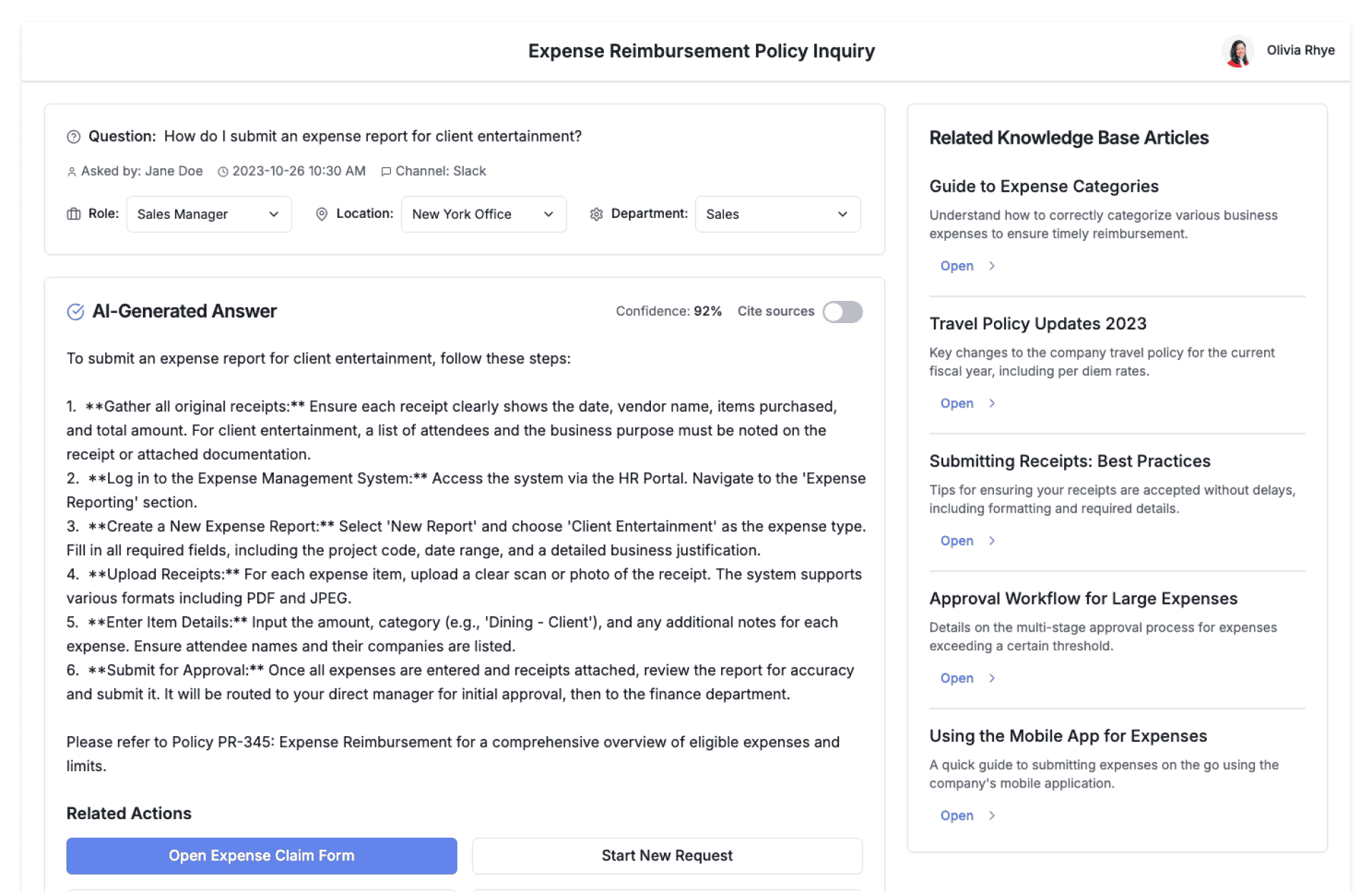 - Support for leave, payroll, benefits, and onboarding FAQs