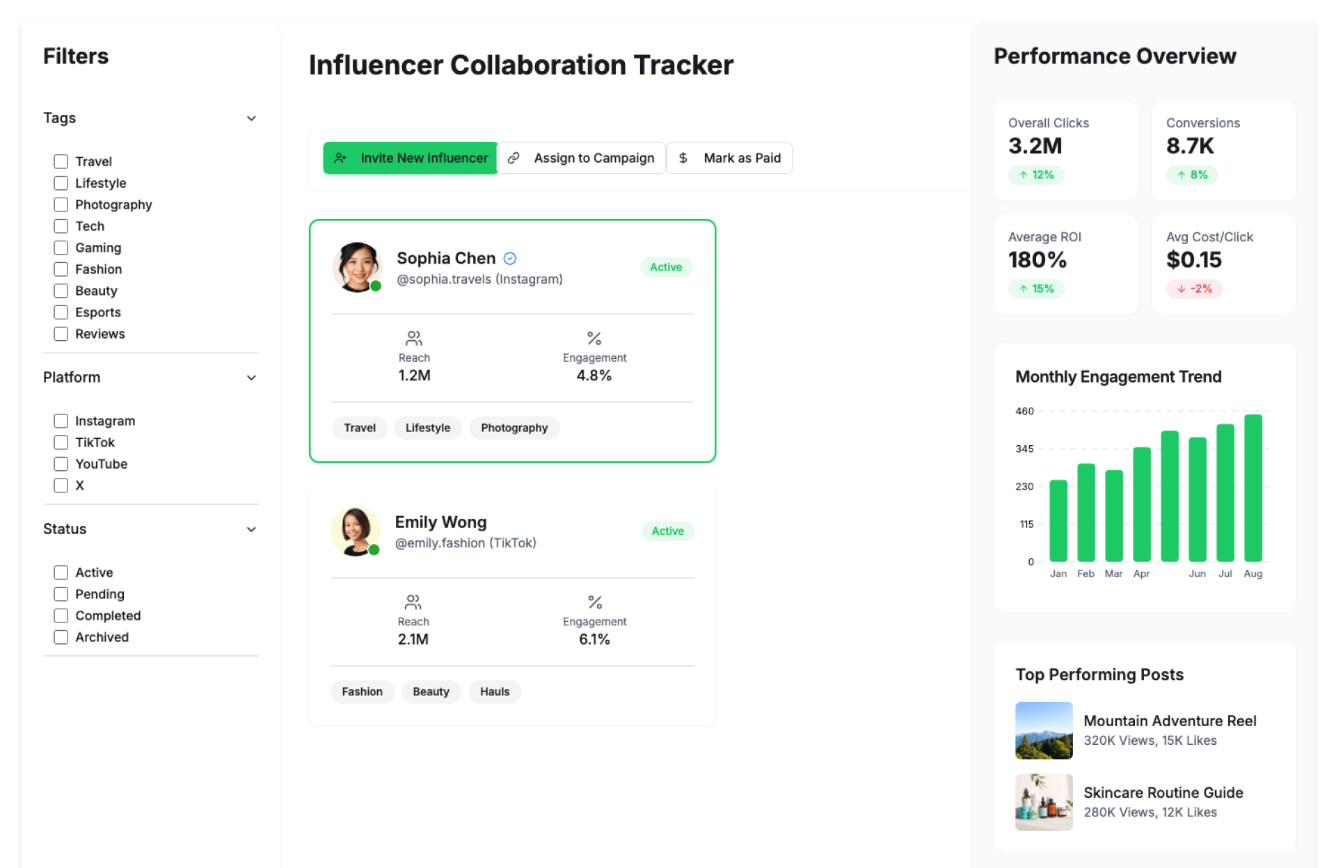 • Campaign-wise influencer grouping