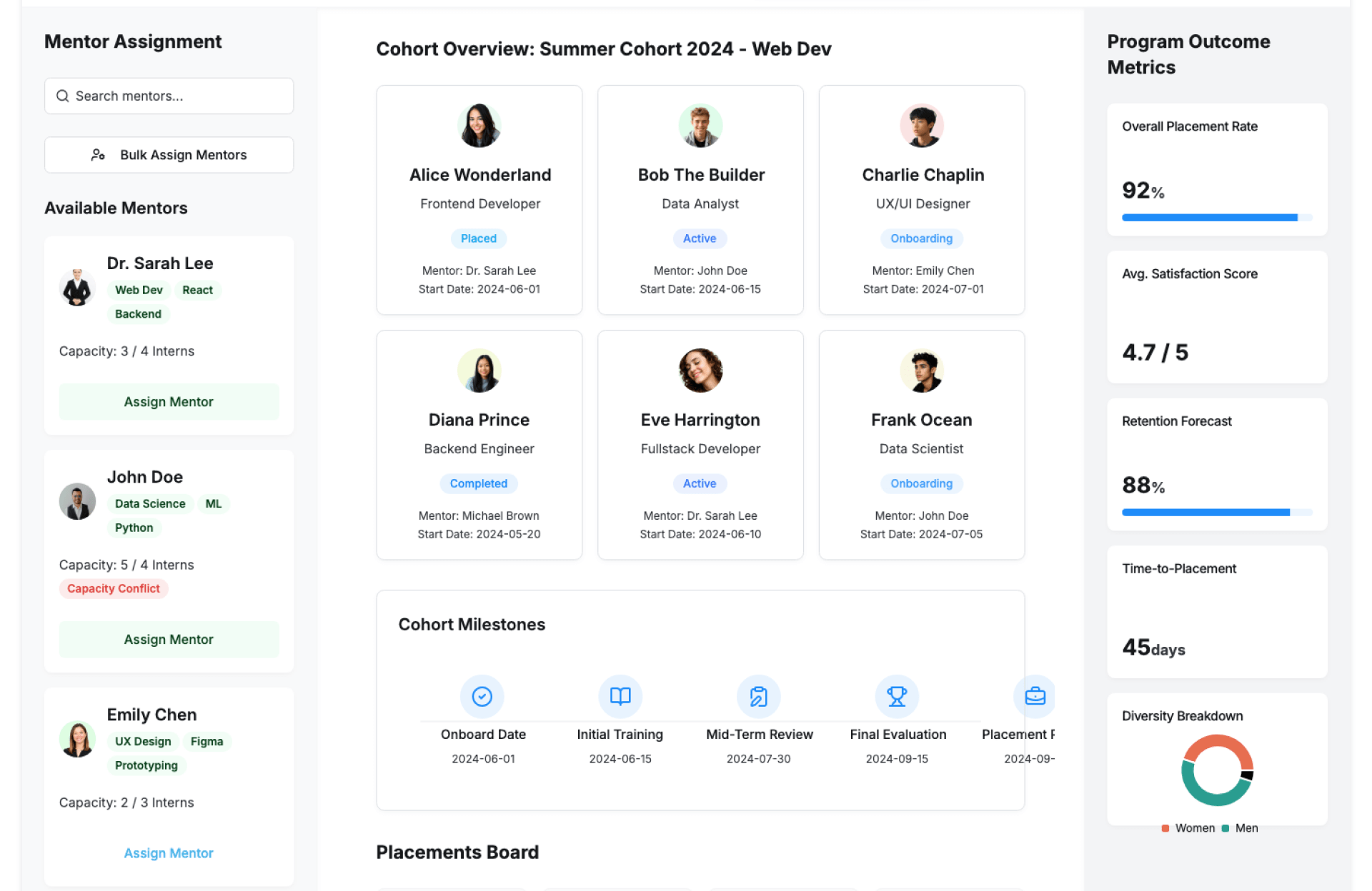 | Universities | Manage student internship placements efficiently |