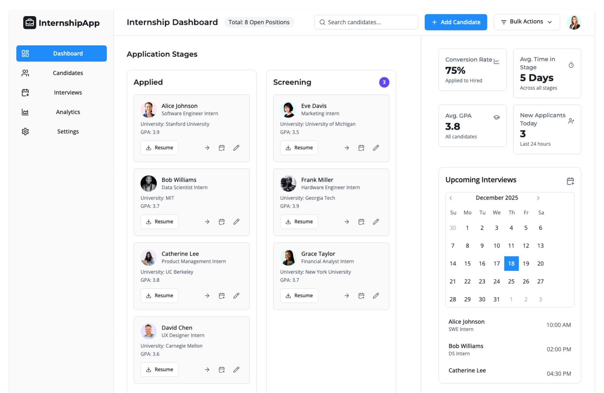 | HR & Recruiters | Streamline intern shortlisting and selection |