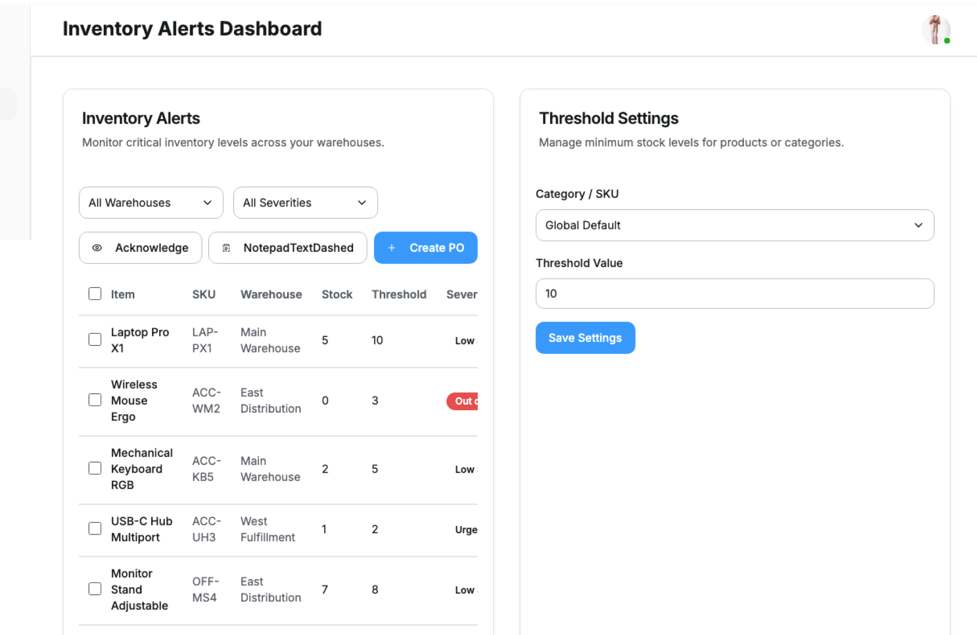 - Monitor Thresholds – Identify low or excess stock levels