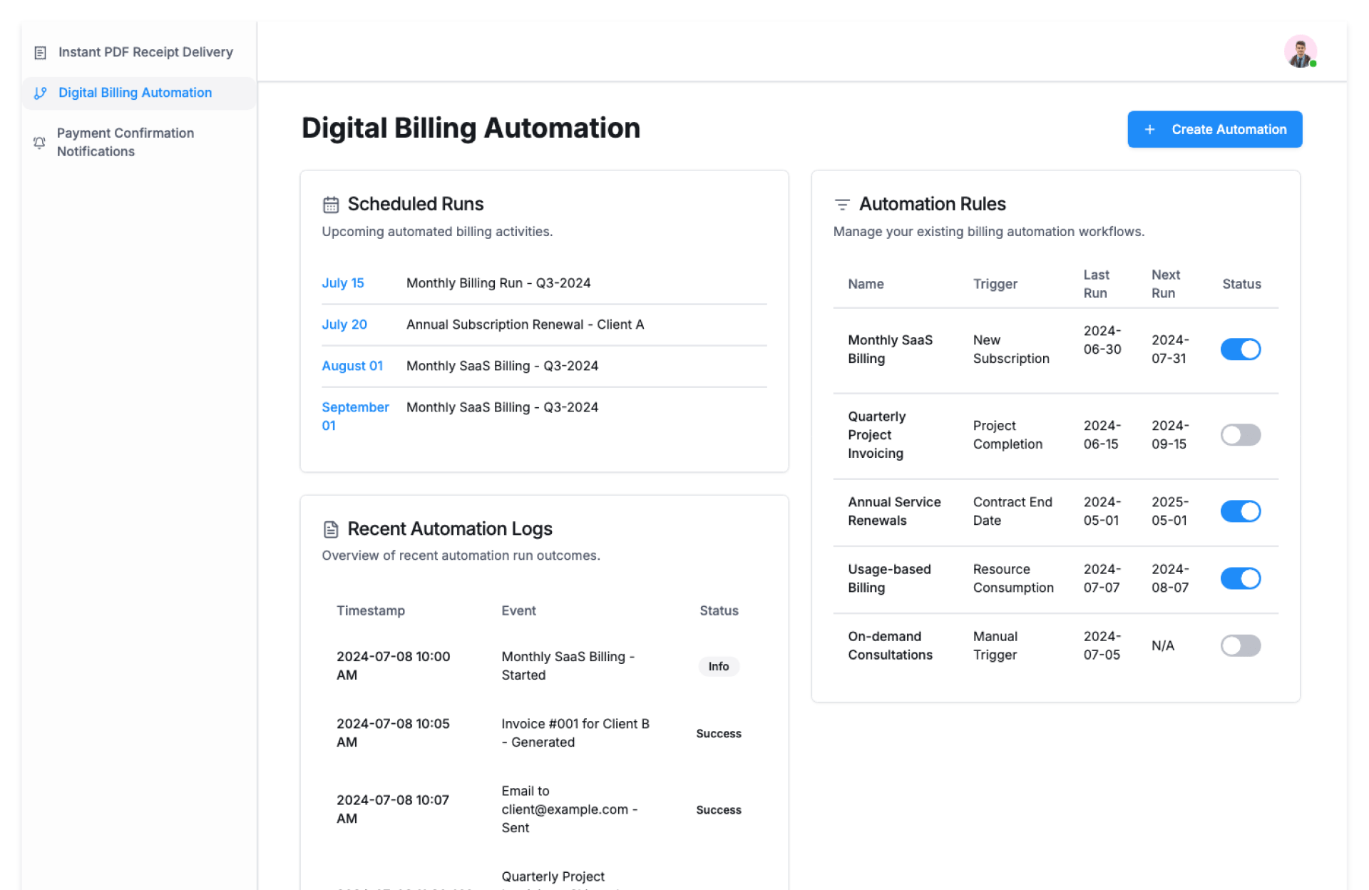 - Connect Billing Systems – Sync with ERP, POS, or accounting tools