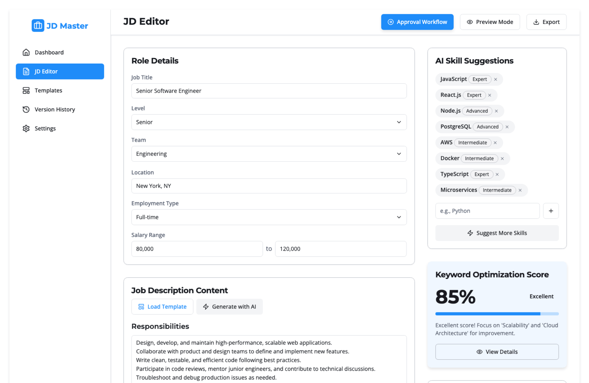 Recruiters Create accurate JDs faster and reduce time-to-hire
