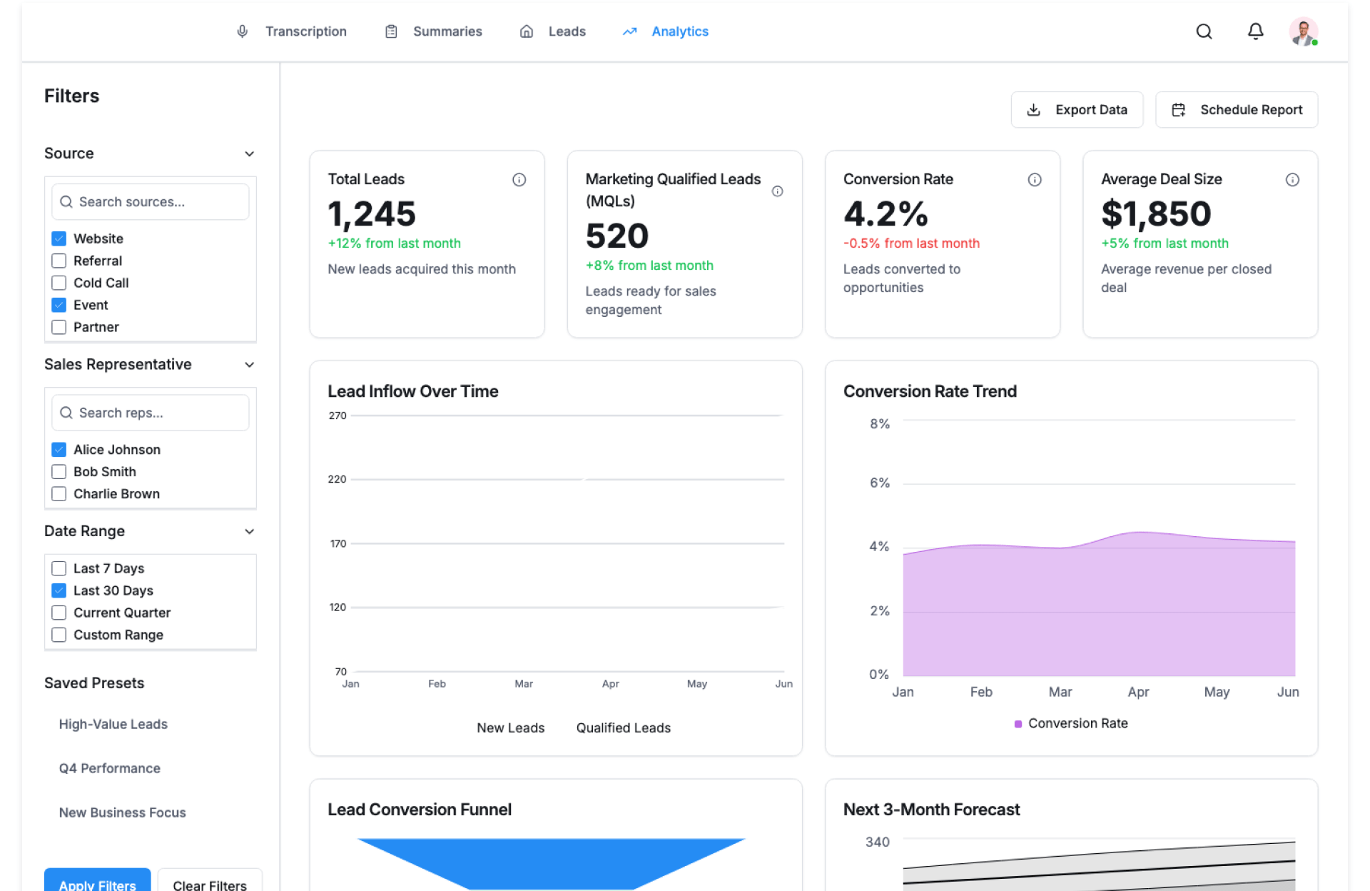- Lead source and channel performance view