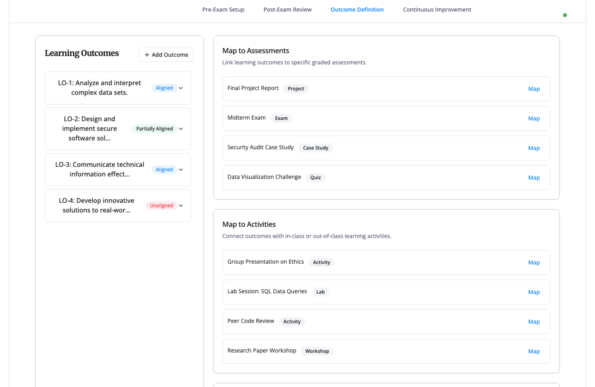 - Outcome-to-assessment mapping