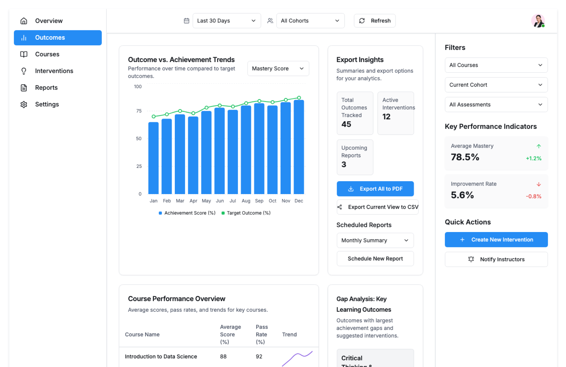 | Trainers & Faculty | Identify outcome gaps early |