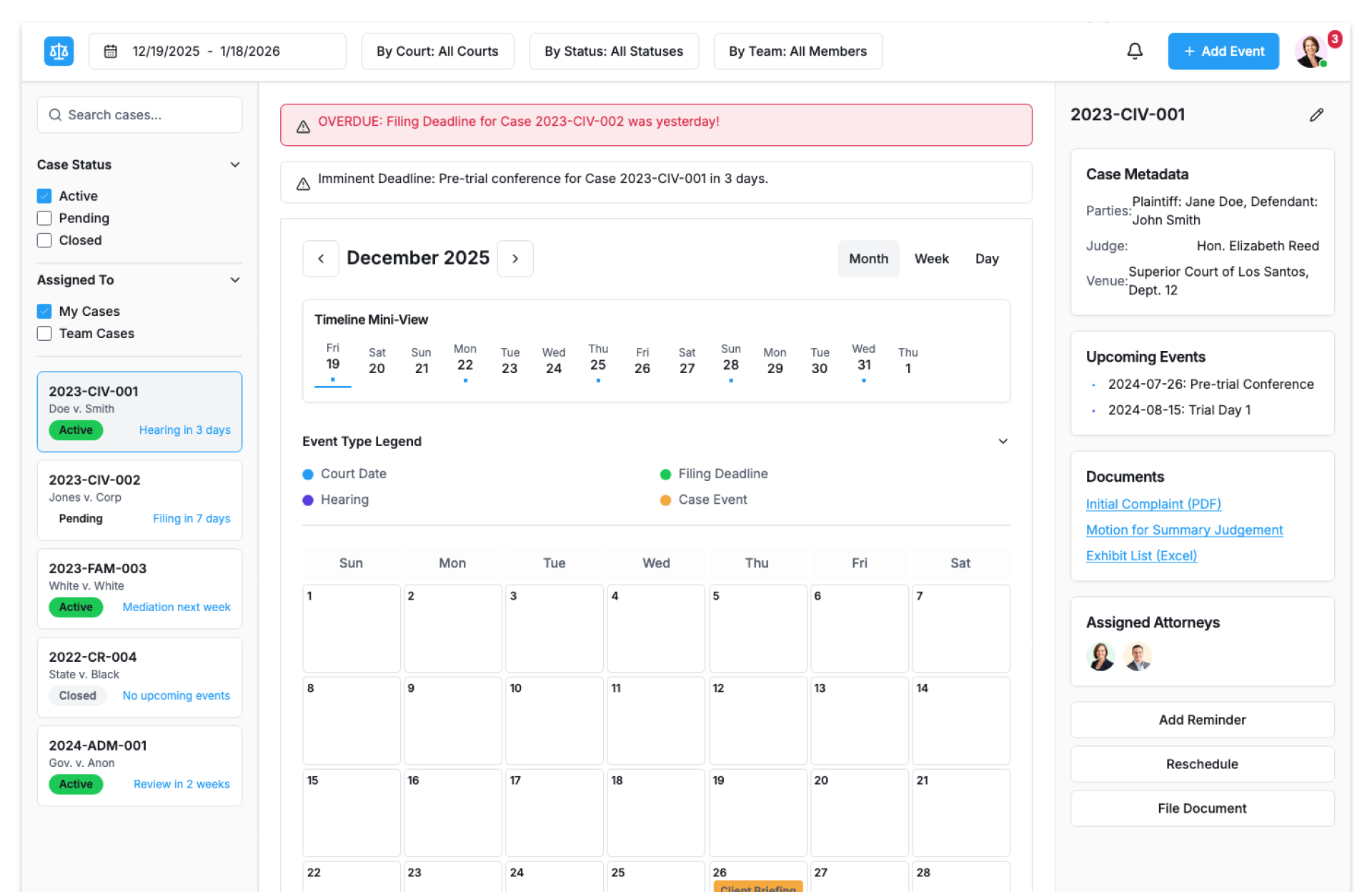 | In-house Counsel | Gain visibility into active litigation timelines |