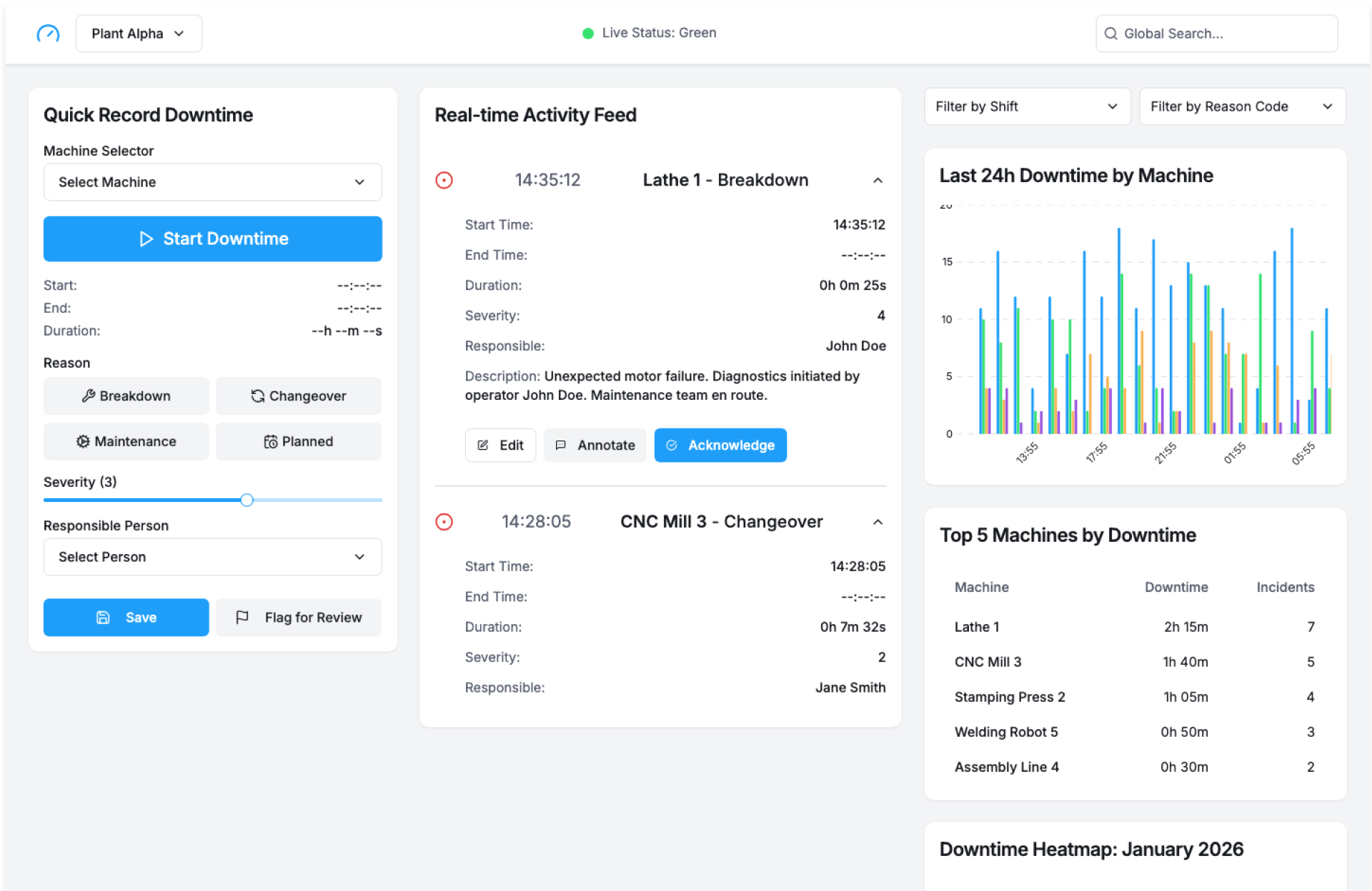 - Log Downtime Events – Record stoppages as they occur