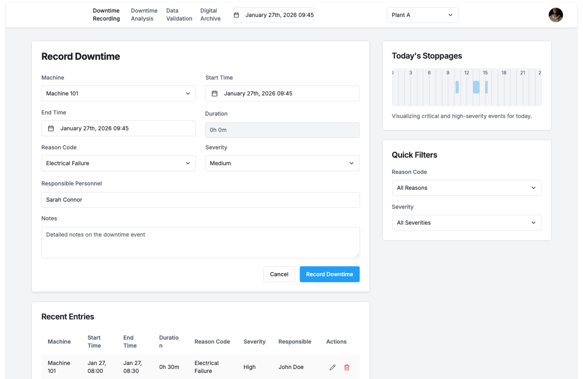 | Production Teams | Log downtime quickly and accurately |