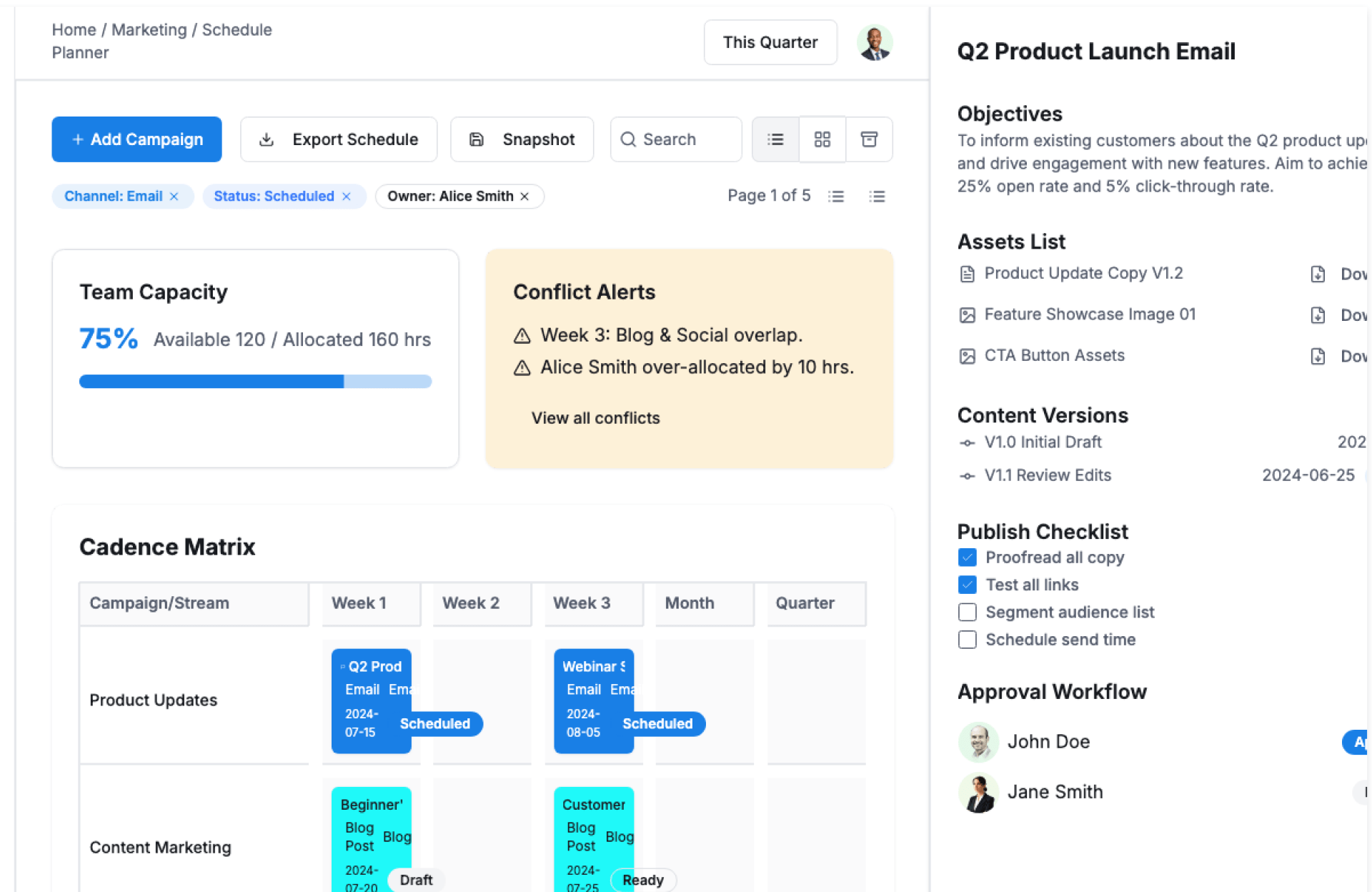- Set Up Your Calendar – Define channels, campaign types, and timelines