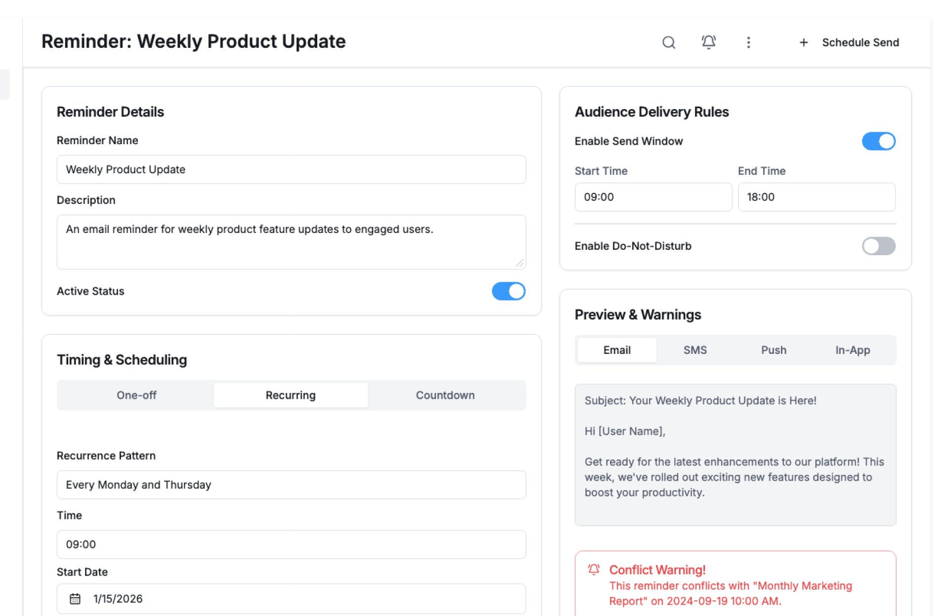 - Set Reminder Rules – Choose when alerts should be sent