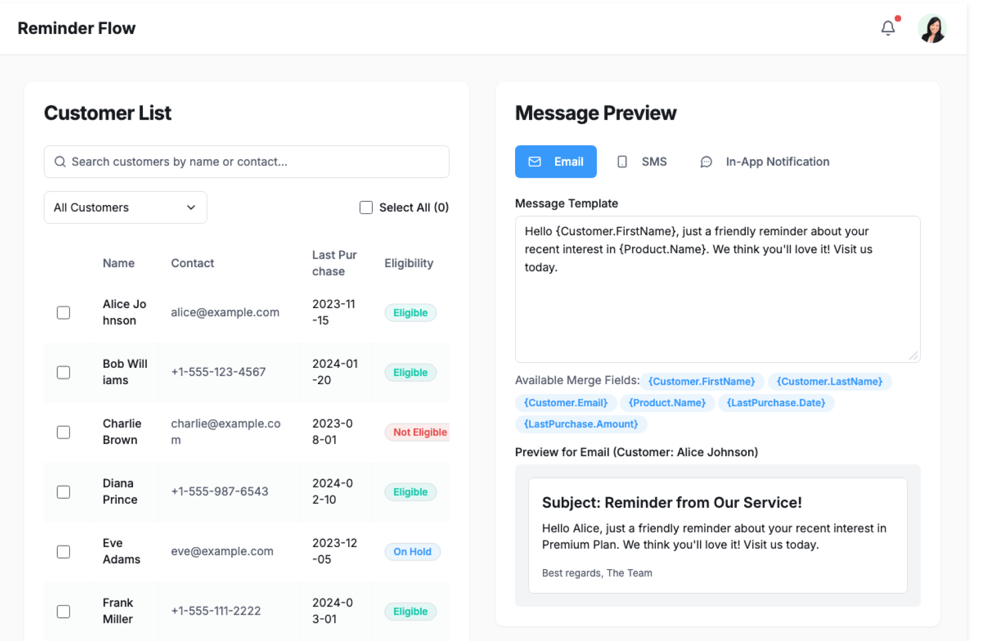 - Personalized reminders per customer