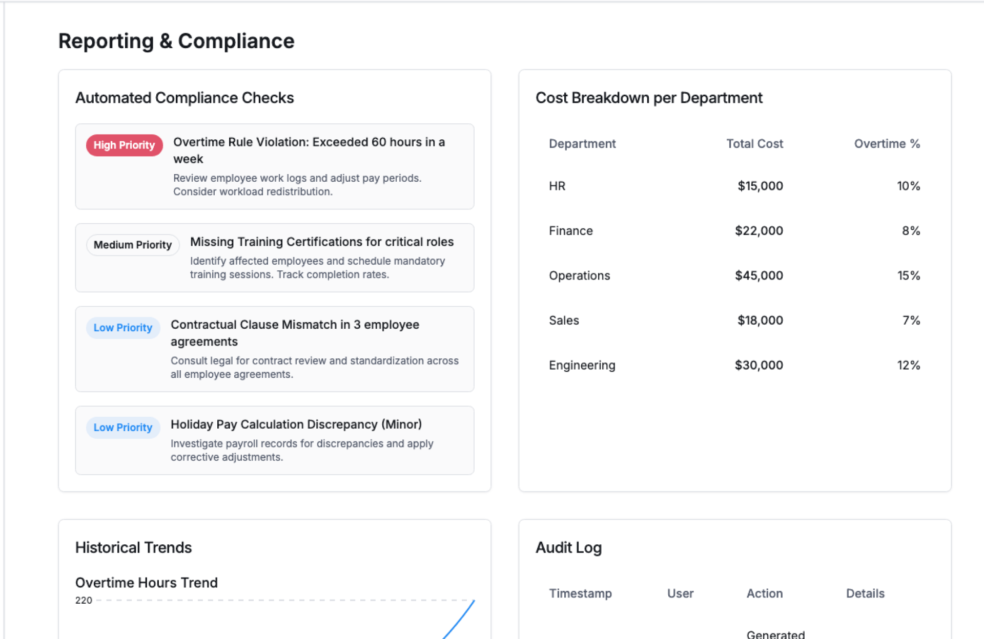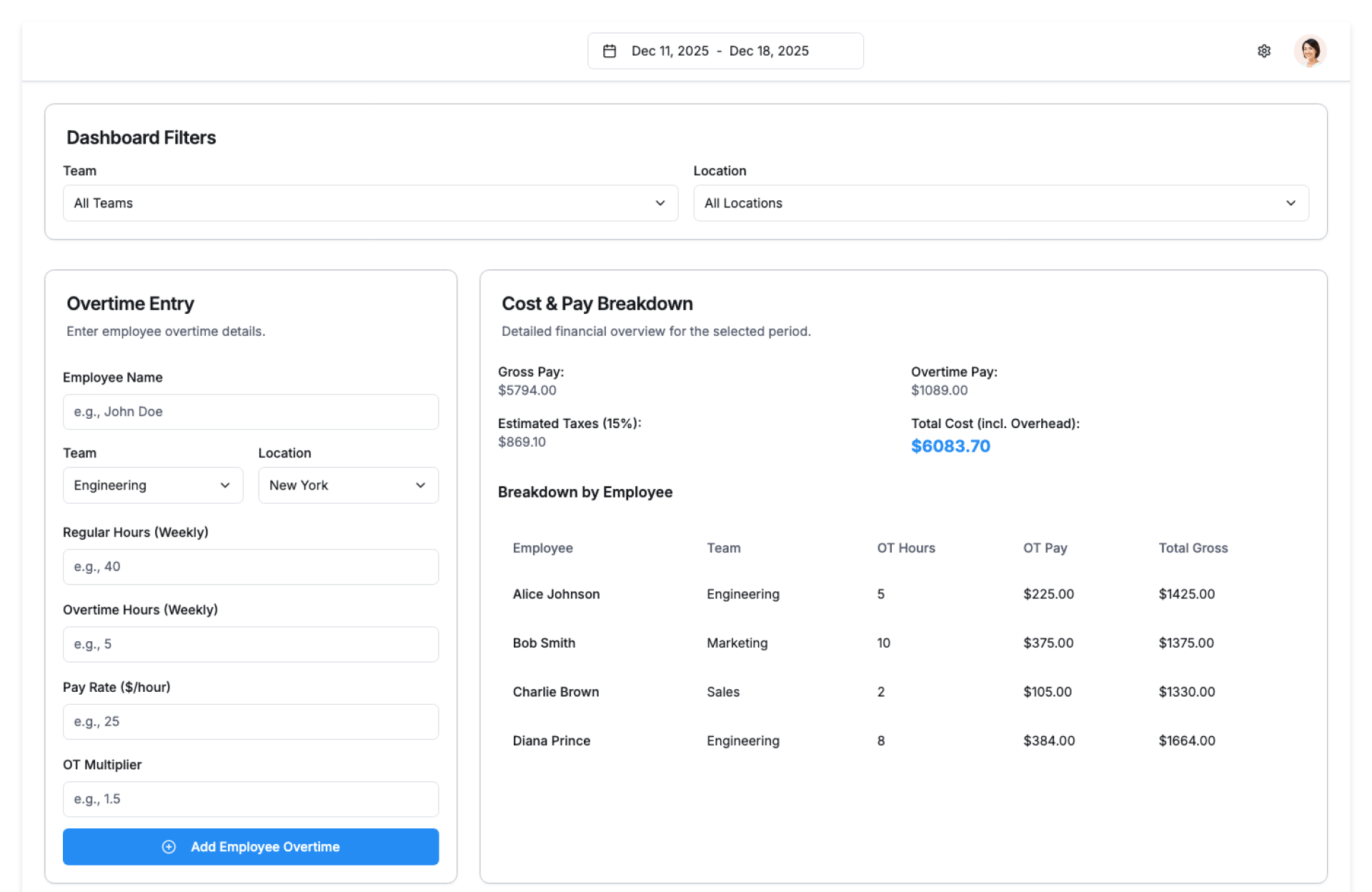 - Review Summaries – View employee and team-level overtime