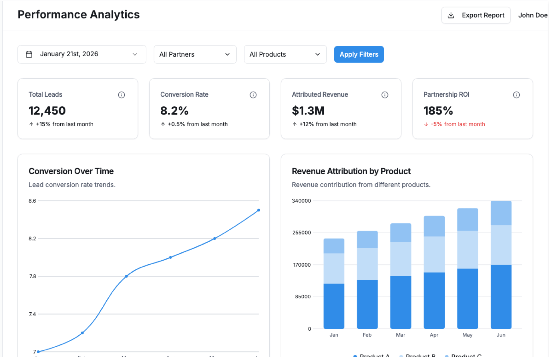 - Analyze Performance – View partner-wise conversion and revenue reports