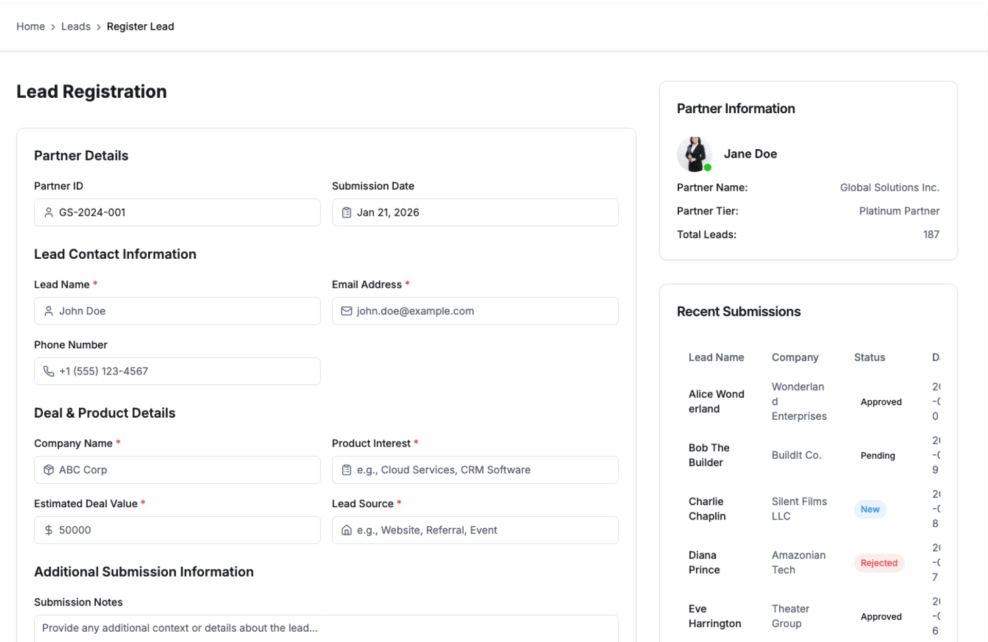 The Partner Lead Tracker App is a centralized solution designed to manage partner-generated and partner-assigned leads efficiently. It enables businesses to assign leads, monitor progress, prevent conflicts, and track conversions while maintaining complete transparency between internal teams and external partners.