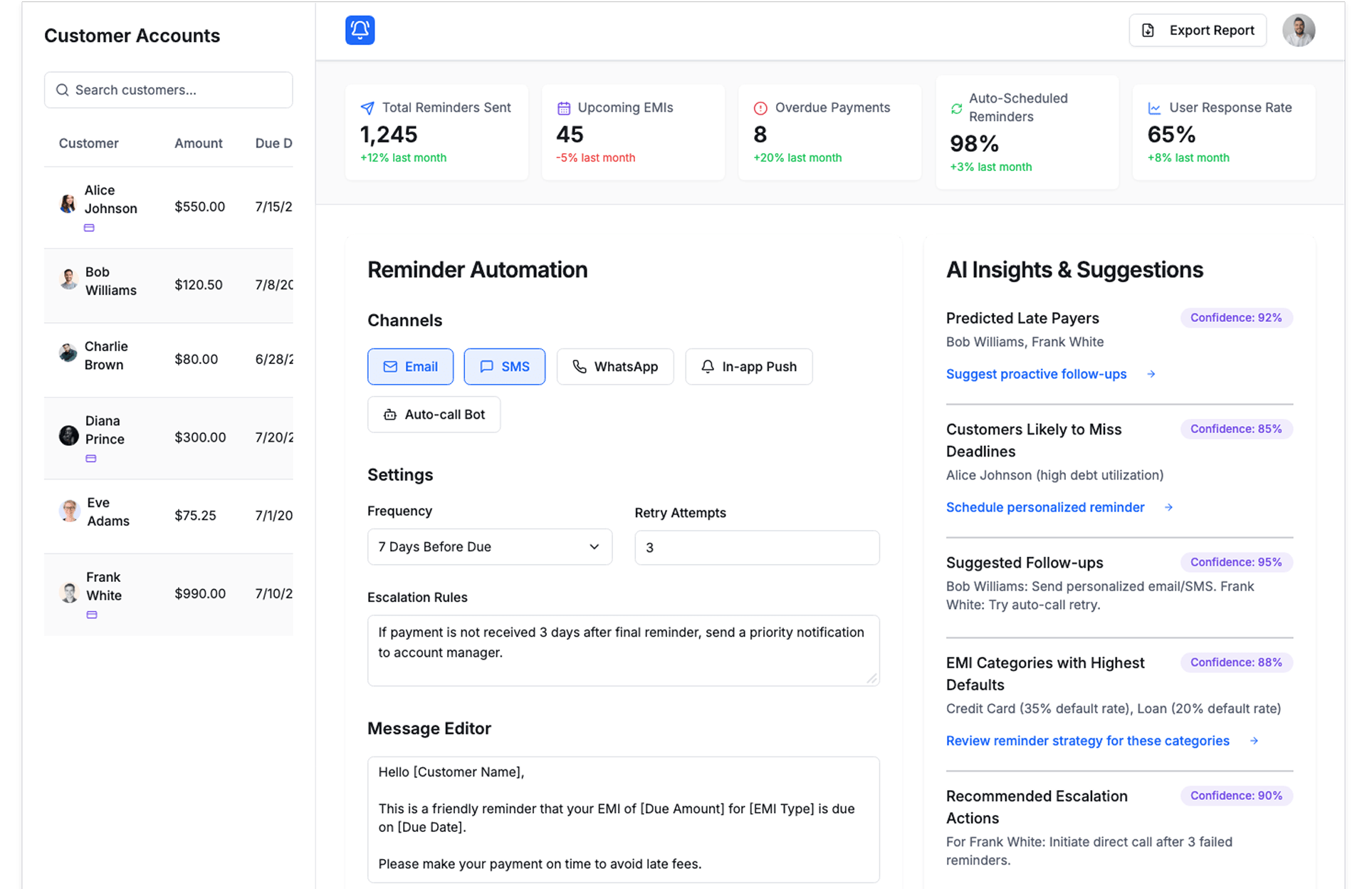 Send auto reminders for EMI or dues.