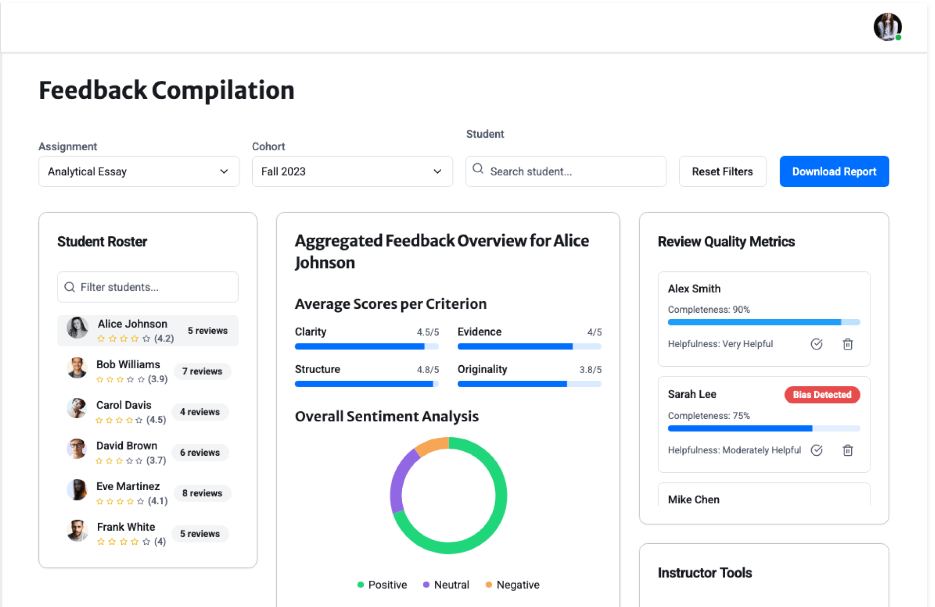 - Individual and batch-level feedback views