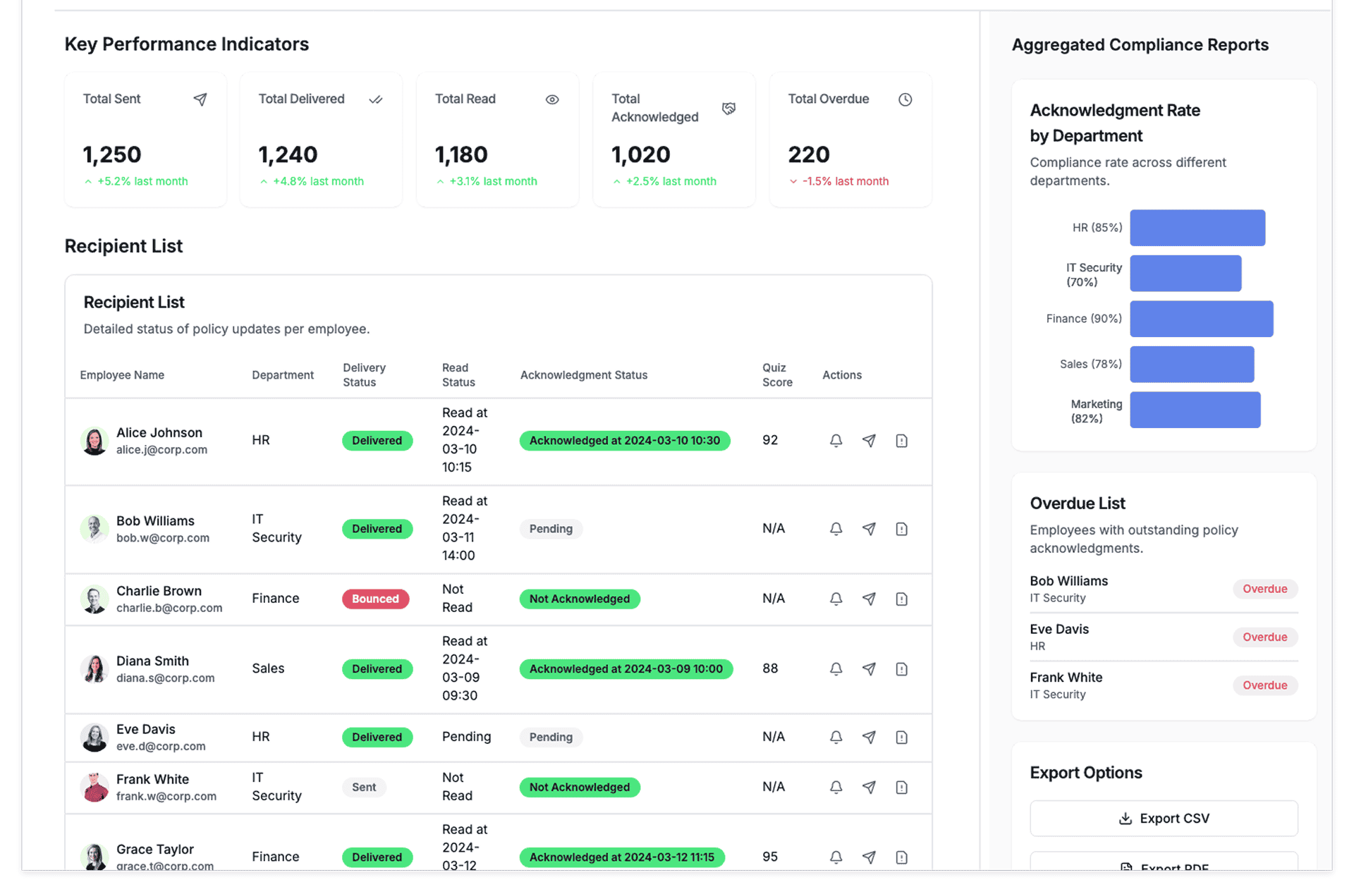 • Automate Compliance Checks – Send reminders and enforce read-confirmations