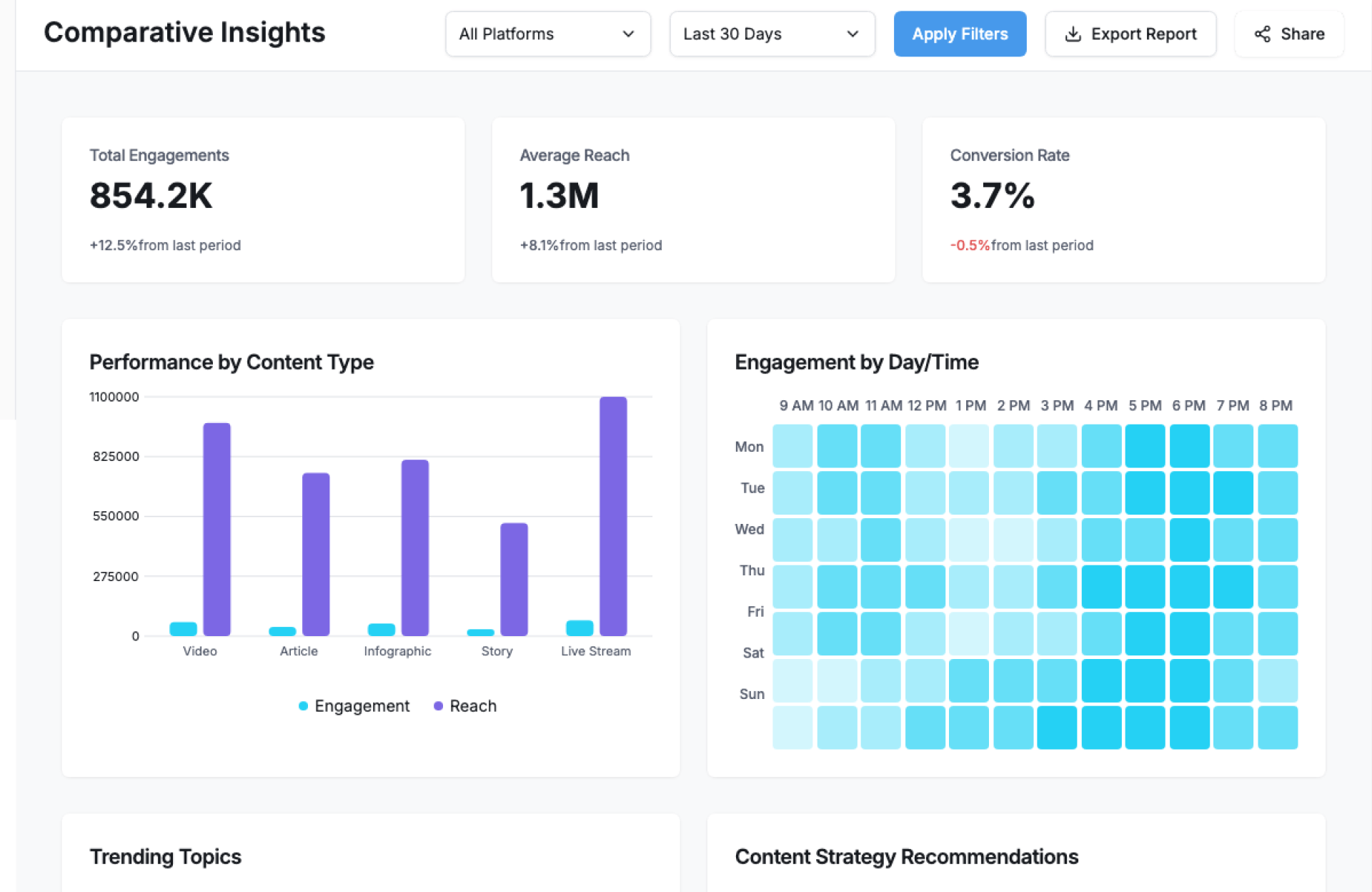 The Post Performance Dashboard by Kriatix is an AI-powered analytics tool that helps brands and teams track how individual posts perform across digital channels. From engagement to reach and trend signals, it turns post-level data into clear insights you can act on.