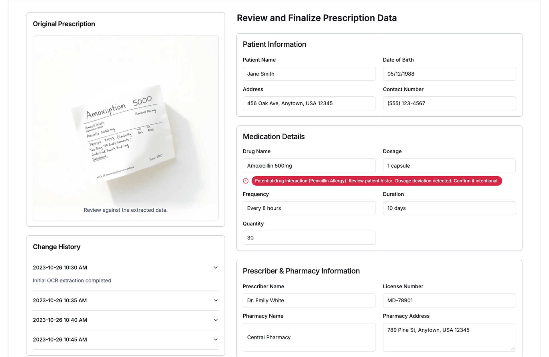 Health-Tech PlatformsAutomate prescription intake and validation