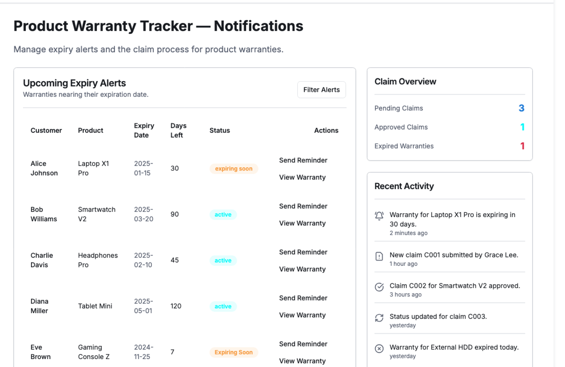 - Product and customer-wise warranty view