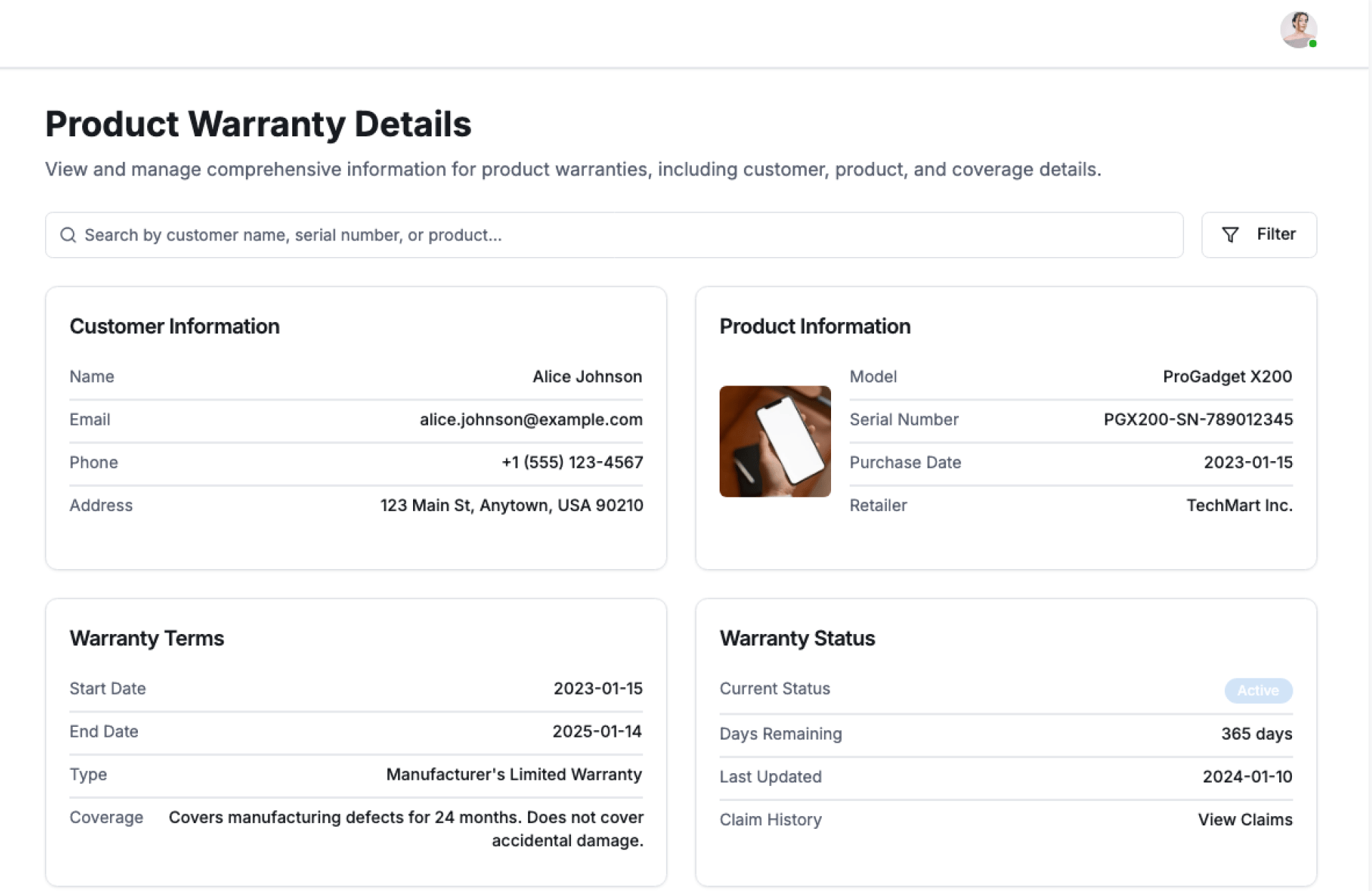 - Product and customer-wise warranty view