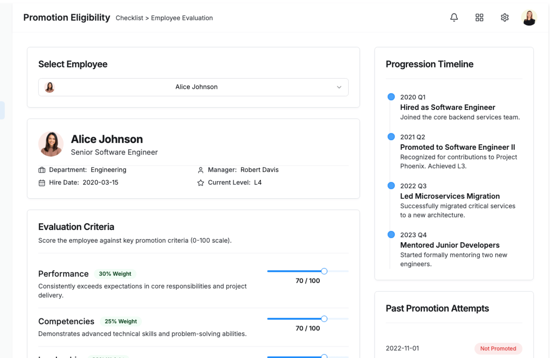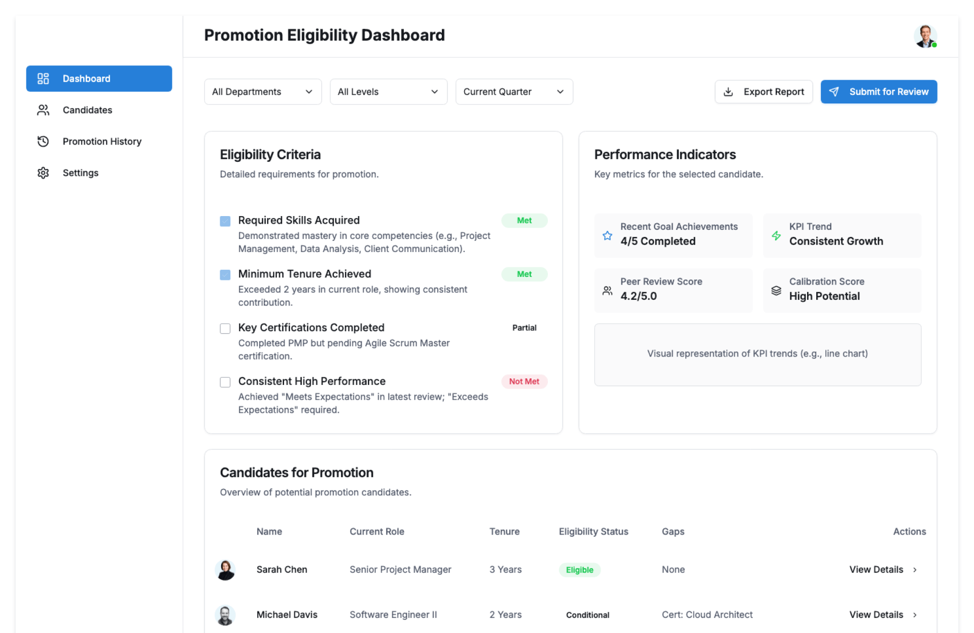 | HR Teams | Ensure policy-based, fair promotion evaluations |