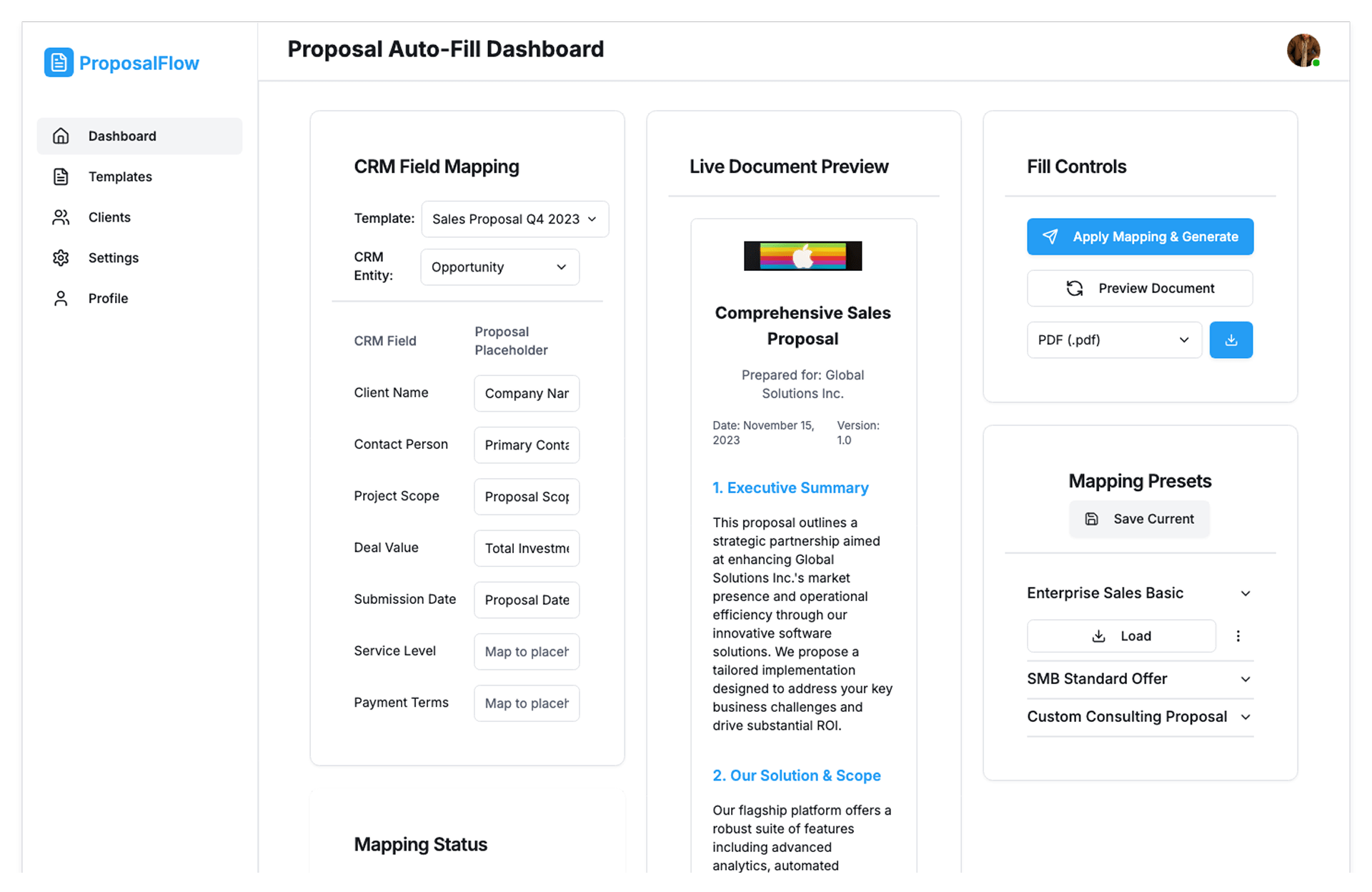 • Smart field mapping for client, pricing, and scope details