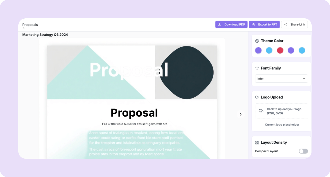 - Multi-Format Export: Download as PDF, DOCX, or Slides