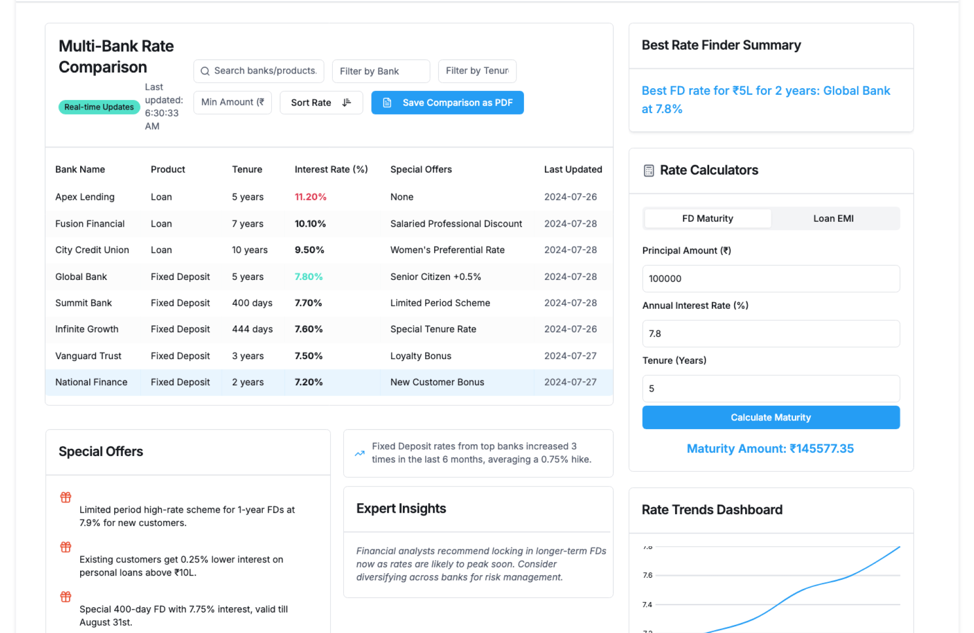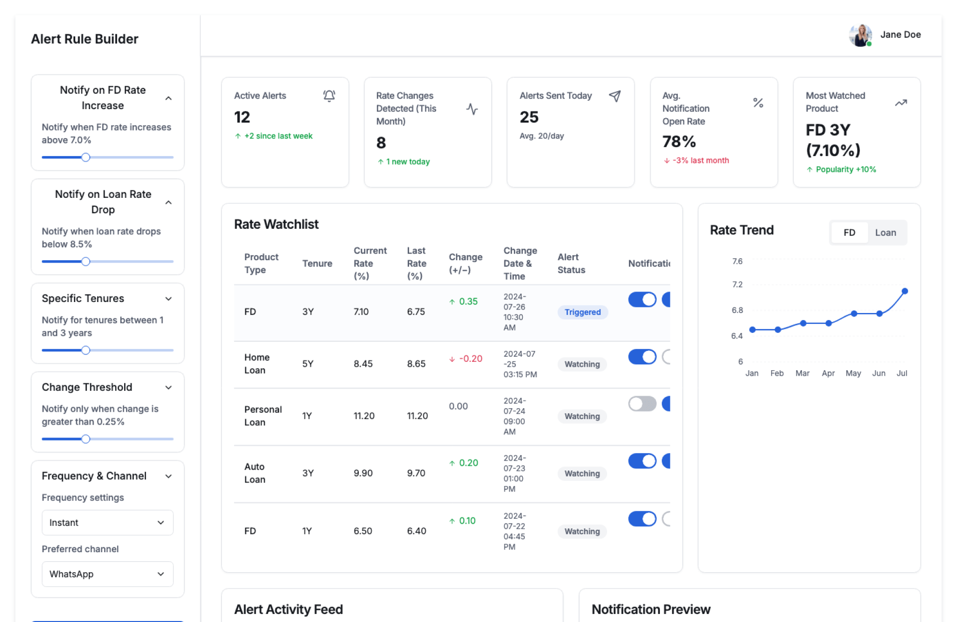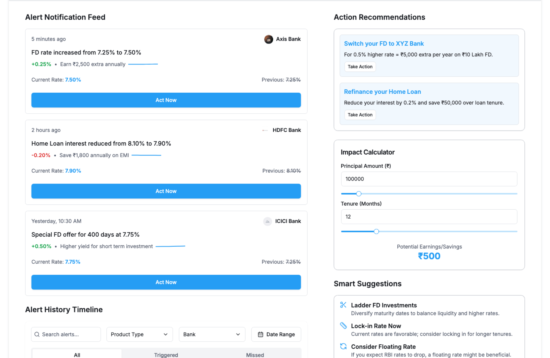 Auto-notify when FD or loan rates change.