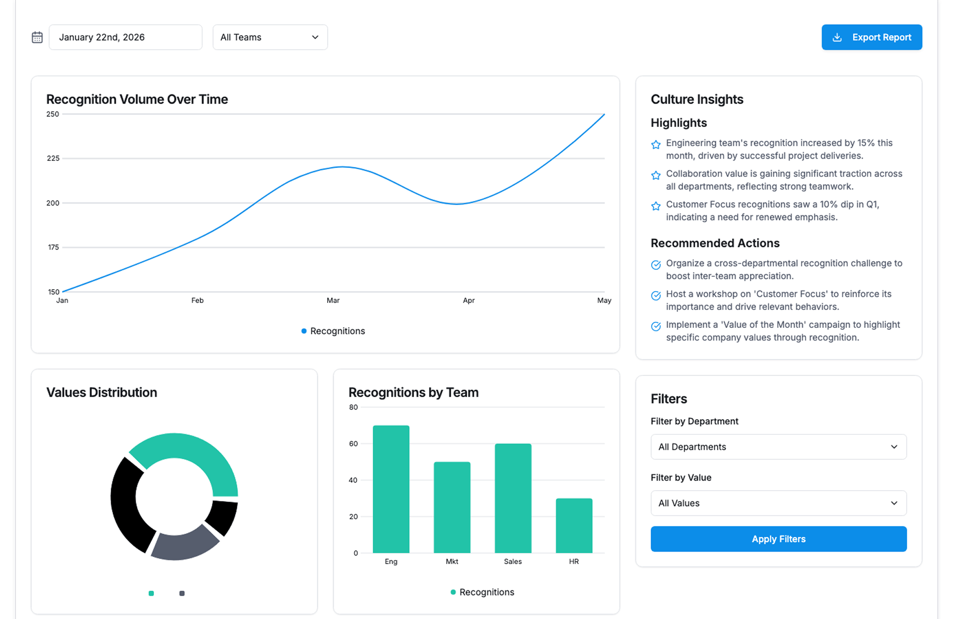 | People Ops | Track engagement and recognition patterns |