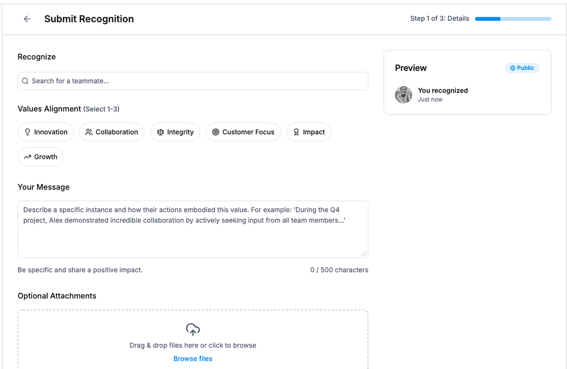 - Custom recognition categories aligned with company values