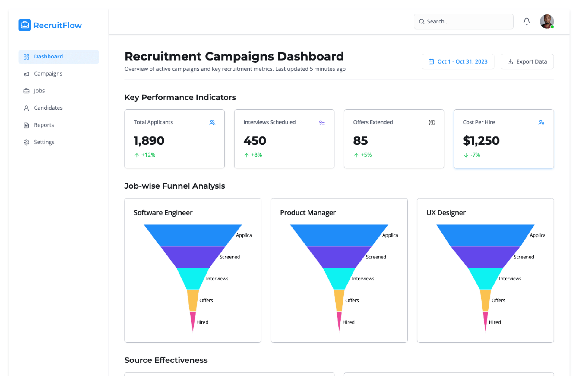- Centralize all recruitment campaigns in one dashboard