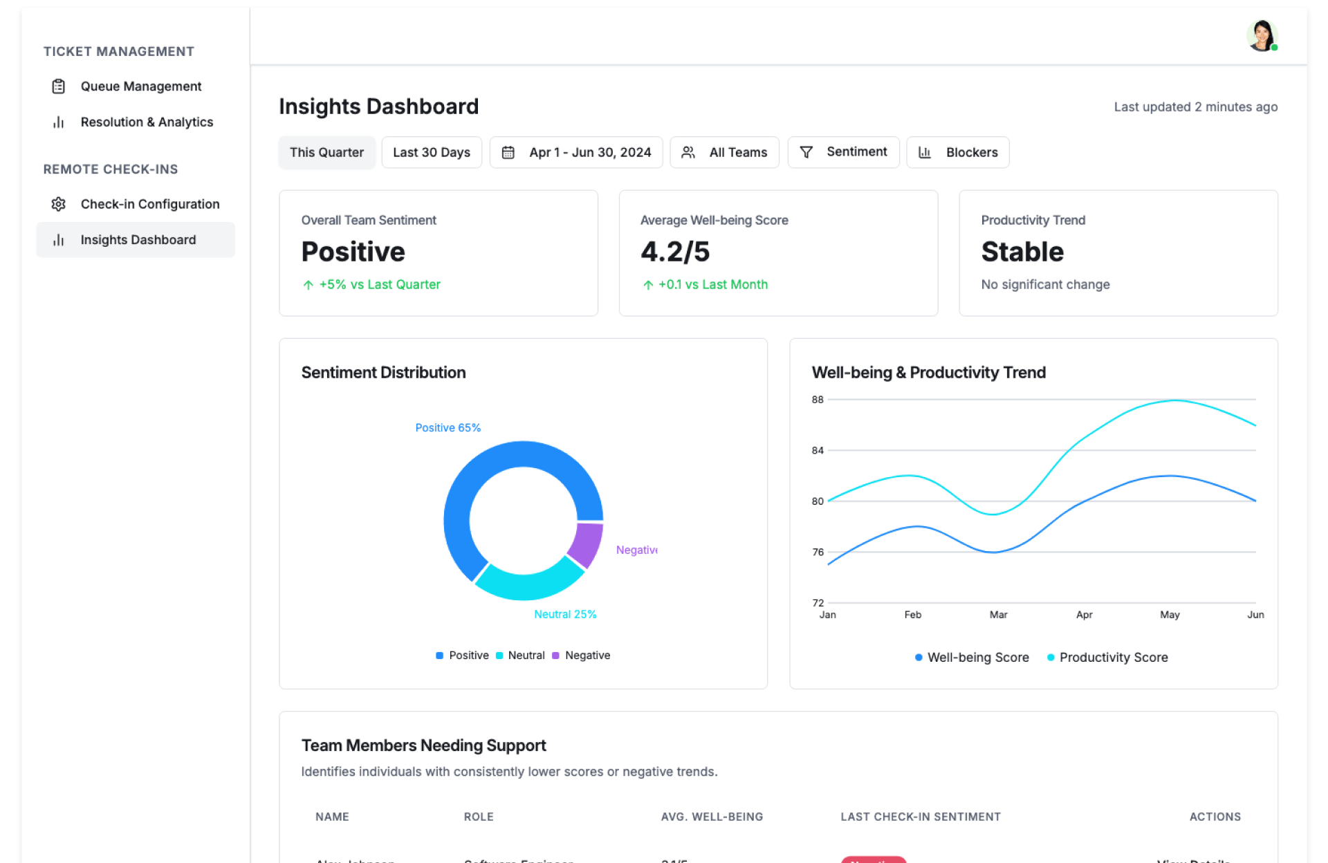 The Remote Work Check-in Bot by Kriatix helps organizations maintain visibility, engagement, and productivity across distributed teams. It automates daily, weekly, or custom check-ins to capture work updates, availability, mood, and blockers—so managers stay informed without constant meetings or manual follow-ups.
