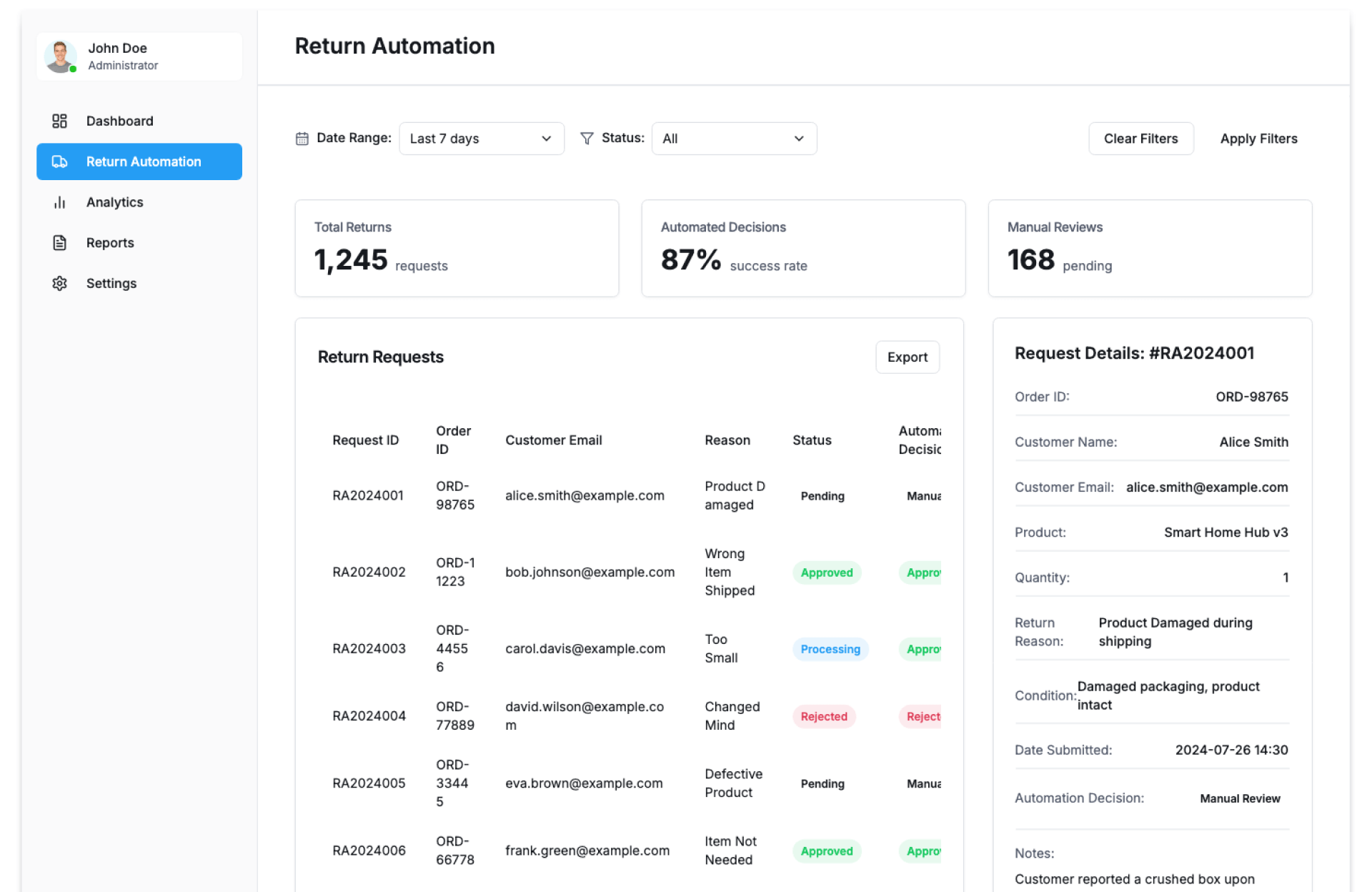 Built for high-volume commerce and support teams, it brings structure and speed to returns.