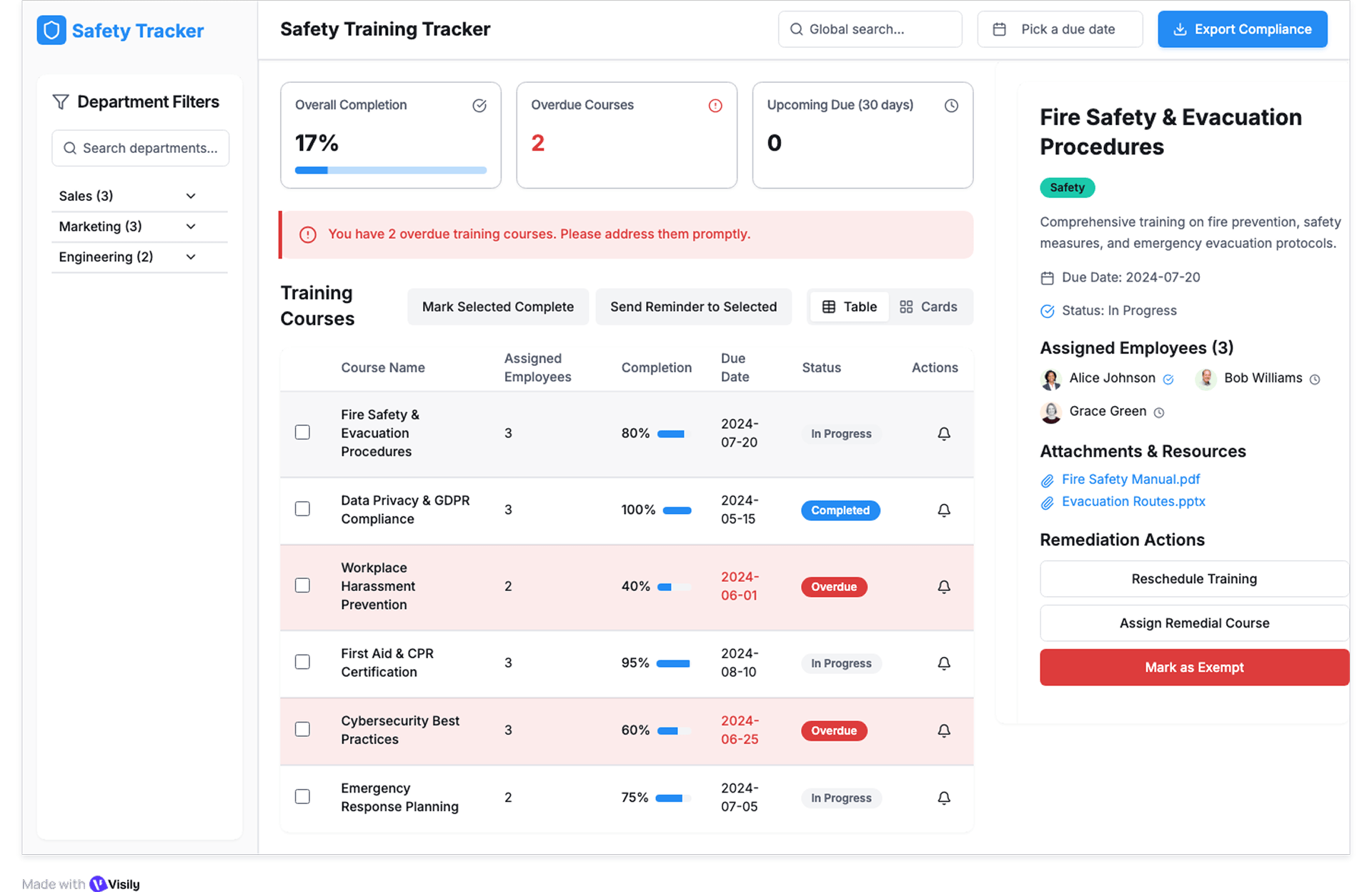 Safety Training Completion Tracker.
