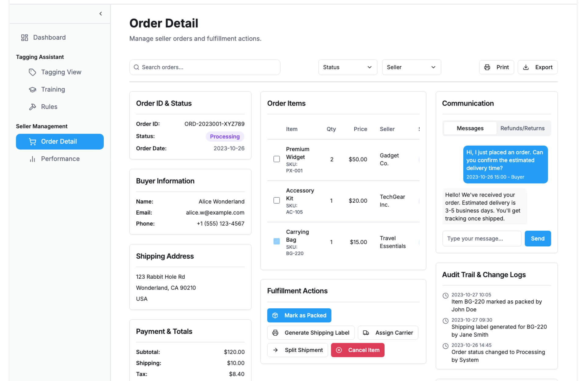 The Seller Order Management Dashboard by Kriatix gives sellers complete visibility and control over their orders from placement to fulfillment. Built for growing marketplaces and direct sellers, it simplifies order tracking, reduces operational friction, and helps teams deliver on time, every time.