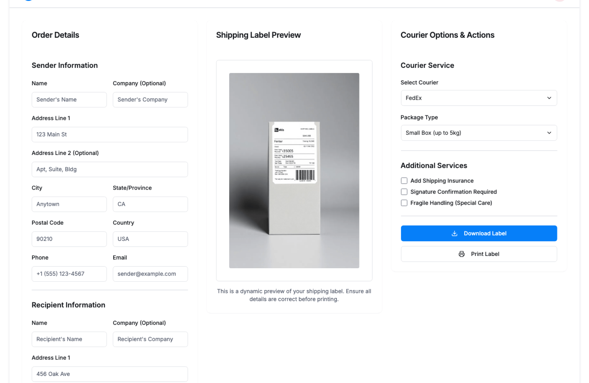 The Shipping Label Generator by Kriatix helps businesses generate compliant, error-free shipping labels instantly. It automates label creation using order and delivery details reducing manual effort, delays, and fulfillment errors.