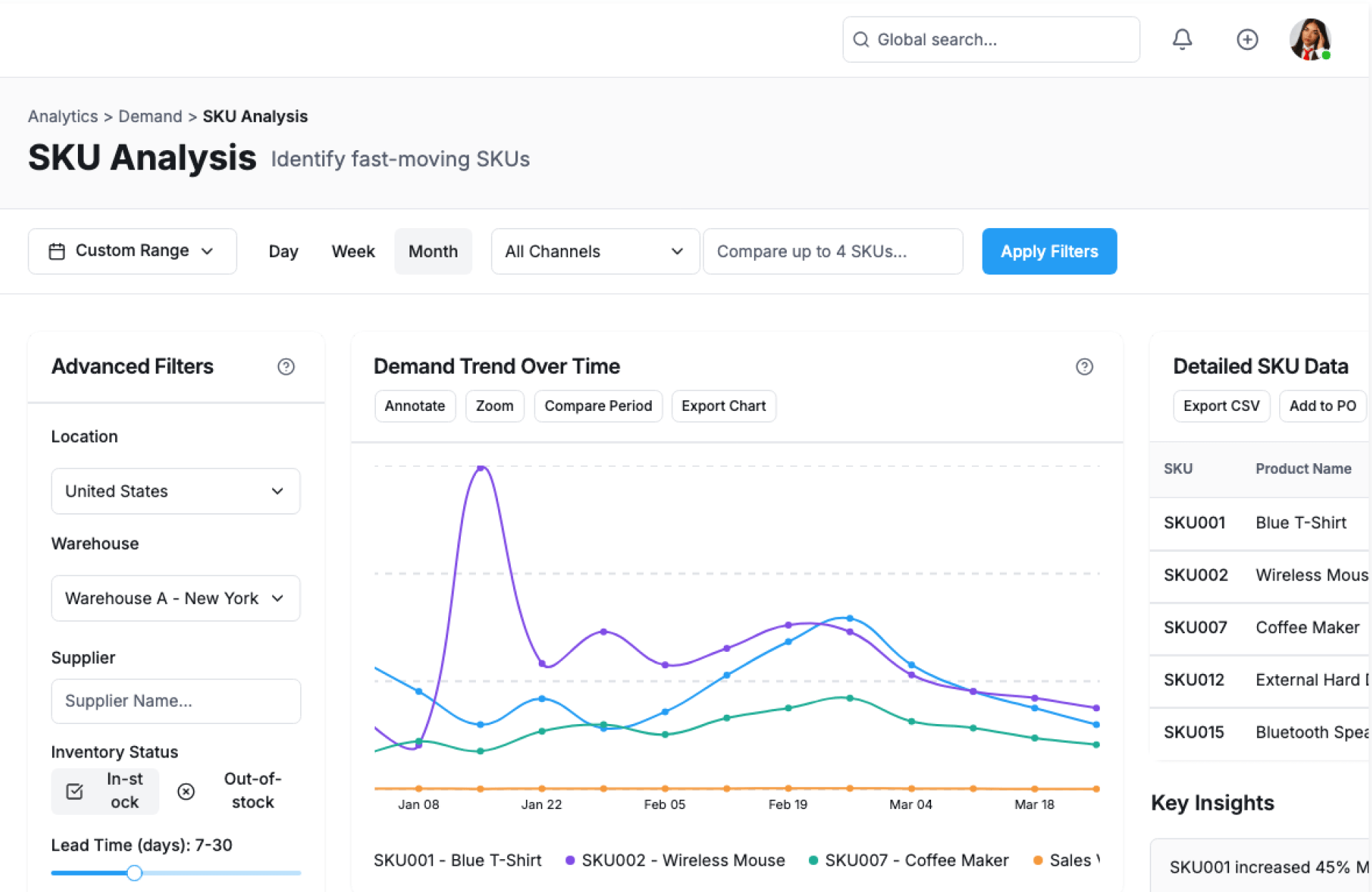 The Simple Demand Trend Chart is a ready-to-use visualization that plots demand data over time in a clean, easy-to-read format. It helps teams identify growth, decline, seasonality, or sudden shifts in demand supporting better planning and decisions.