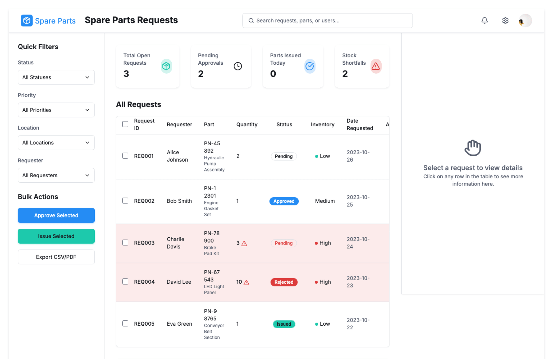 Spare Parts Request Tracker.