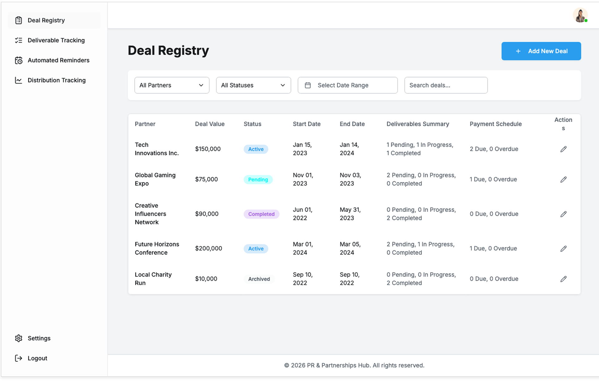 - Maintain full visibility into sponsorship deals