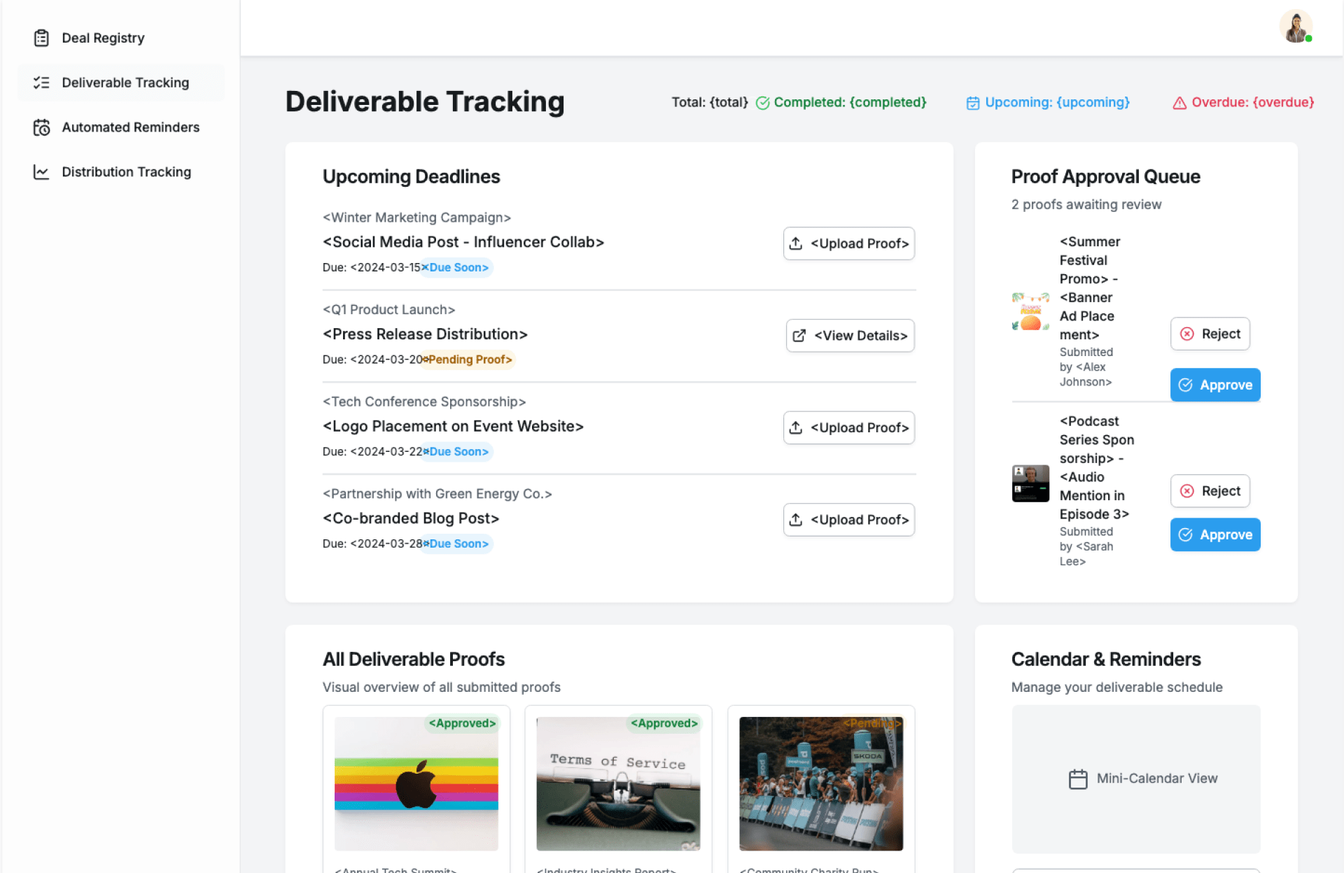 | Event & Marketing Teams | Manage sponsor deliverables on time |