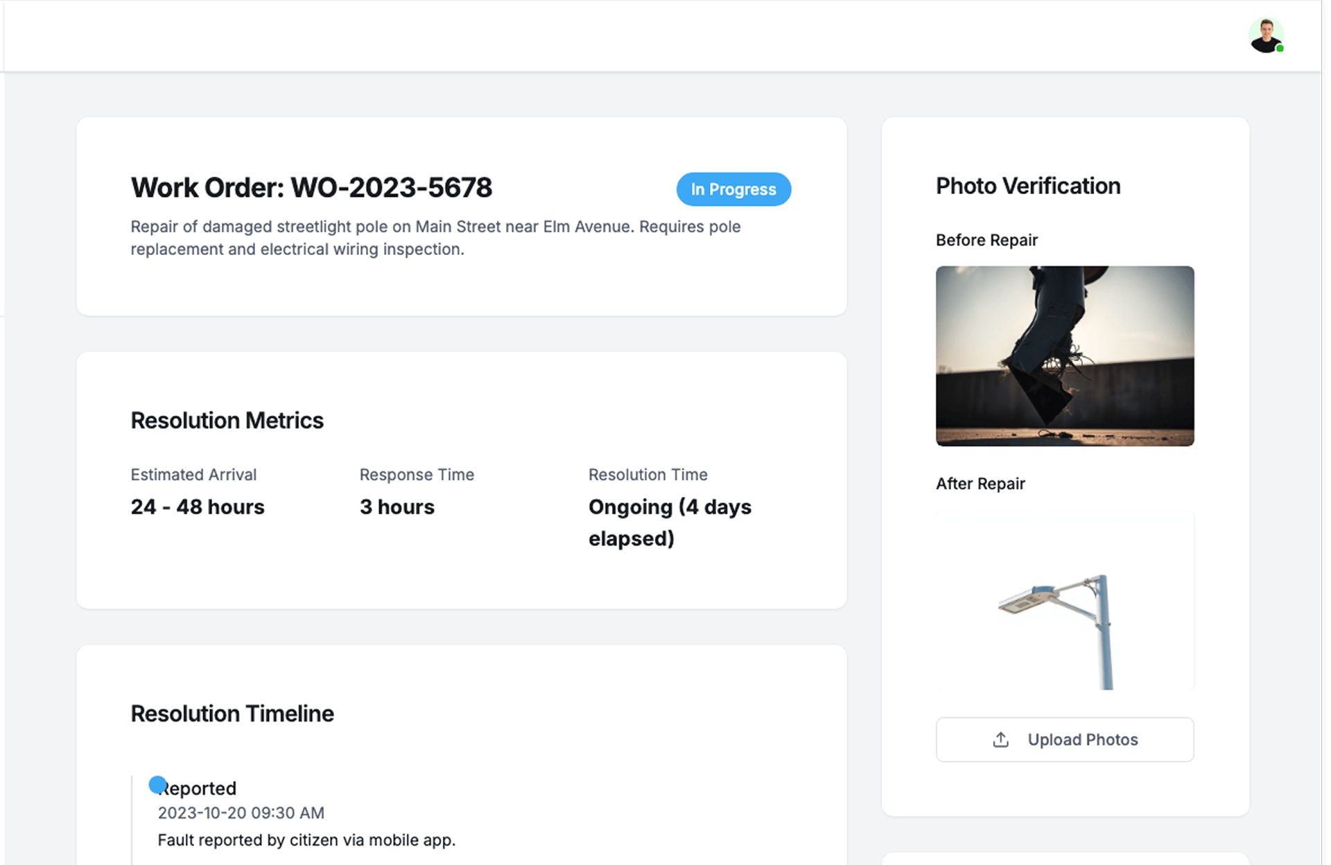 The Streetlight Fault Report Form is an AI-powered digital form that captures streetlight issue details such as location, fault type, and supporting information. Submitted reports are routed to the relevant maintenance teams for action.