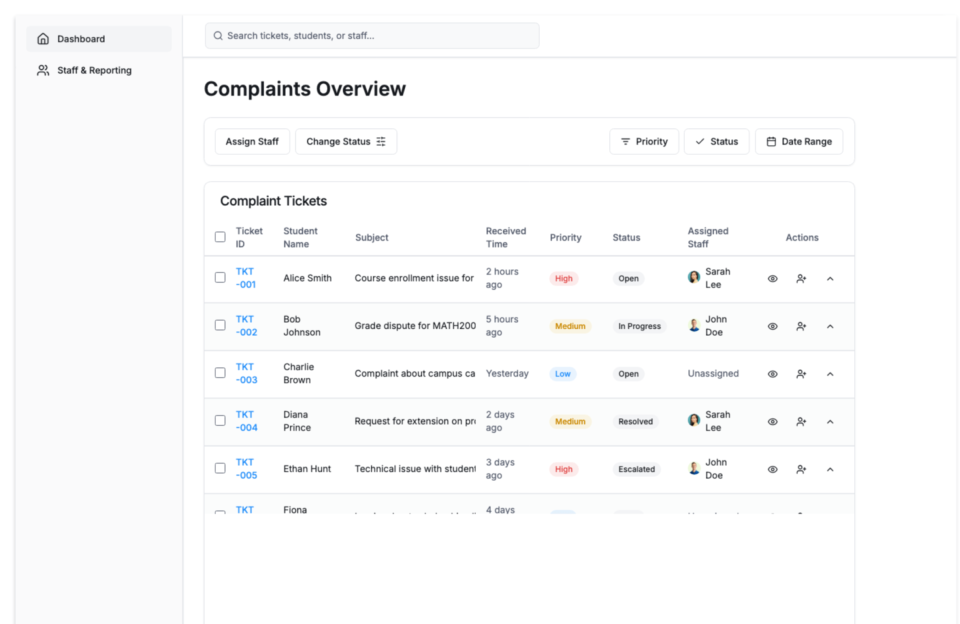 - Ensure no student complaint is overlooked
