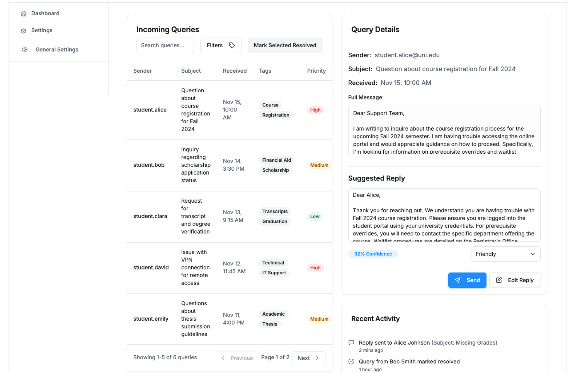 Can it reply to different types of student queries?