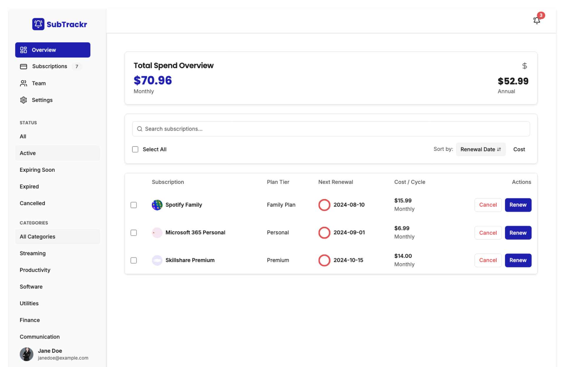 Track Renewal Status – Monitor active, expiring, and renewed plans