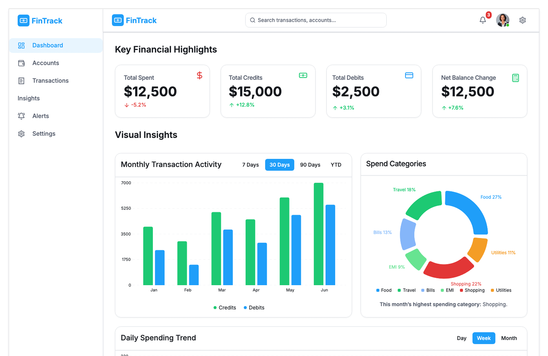 Finance Teams Monitor daily, weekly, and monthly transaction summaries