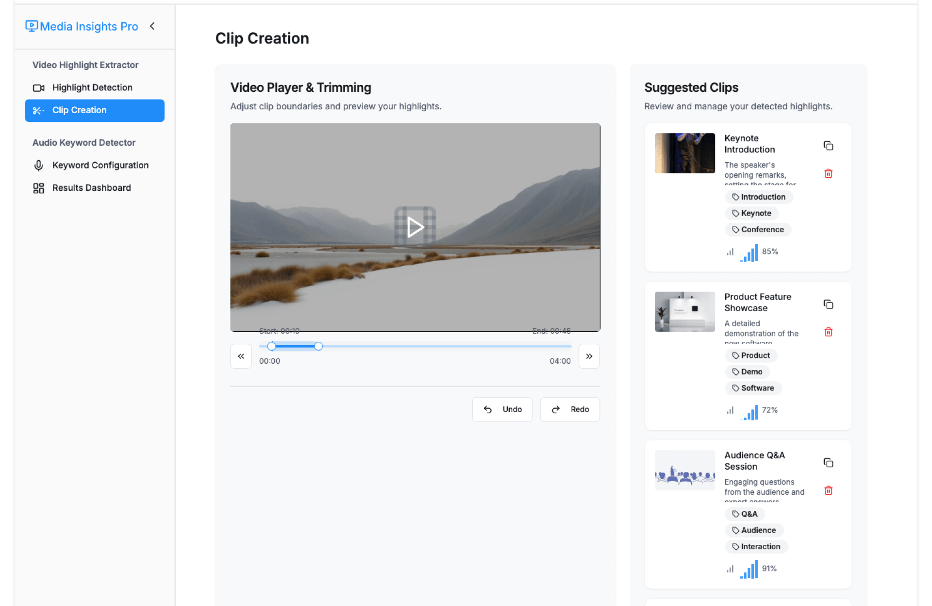 The Video Highlight Extractor is a ready-to-use tool that analyzes video content to detect important segments such as key explanations, decisions, demonstrations, or high-engagement moments. It generates short clips or timestamps so users can jump straight to what matters.