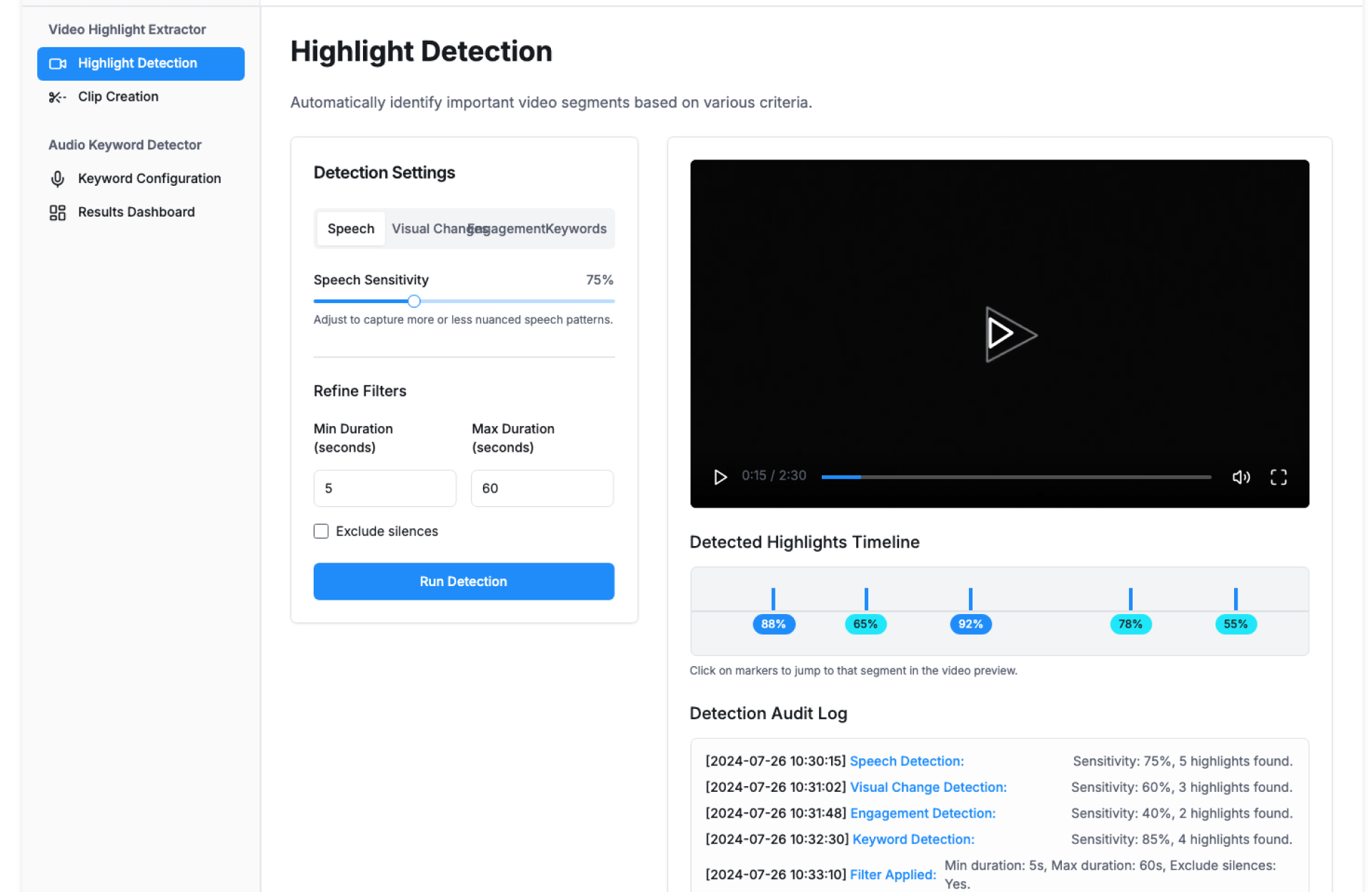 The Video Highlight Extractor by Kriatix automatically identifies and extracts key moments from long videos. It saves time by turning hours of footage into short, meaningful highlights—perfect for review, sharing, and faster decision-making.